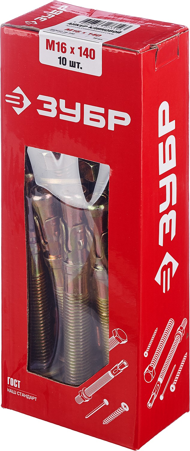ЗУБР М16 х 140 мм, 10 шт, клиновой анкер (302032-16-140)