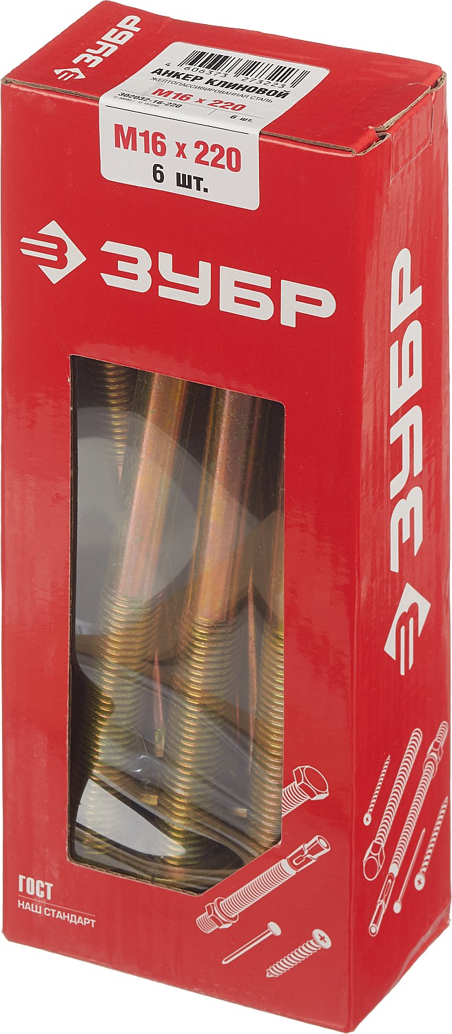 ЗУБР М16 х 220 мм, 6 шт, клиновой анкер (302032-16-220)