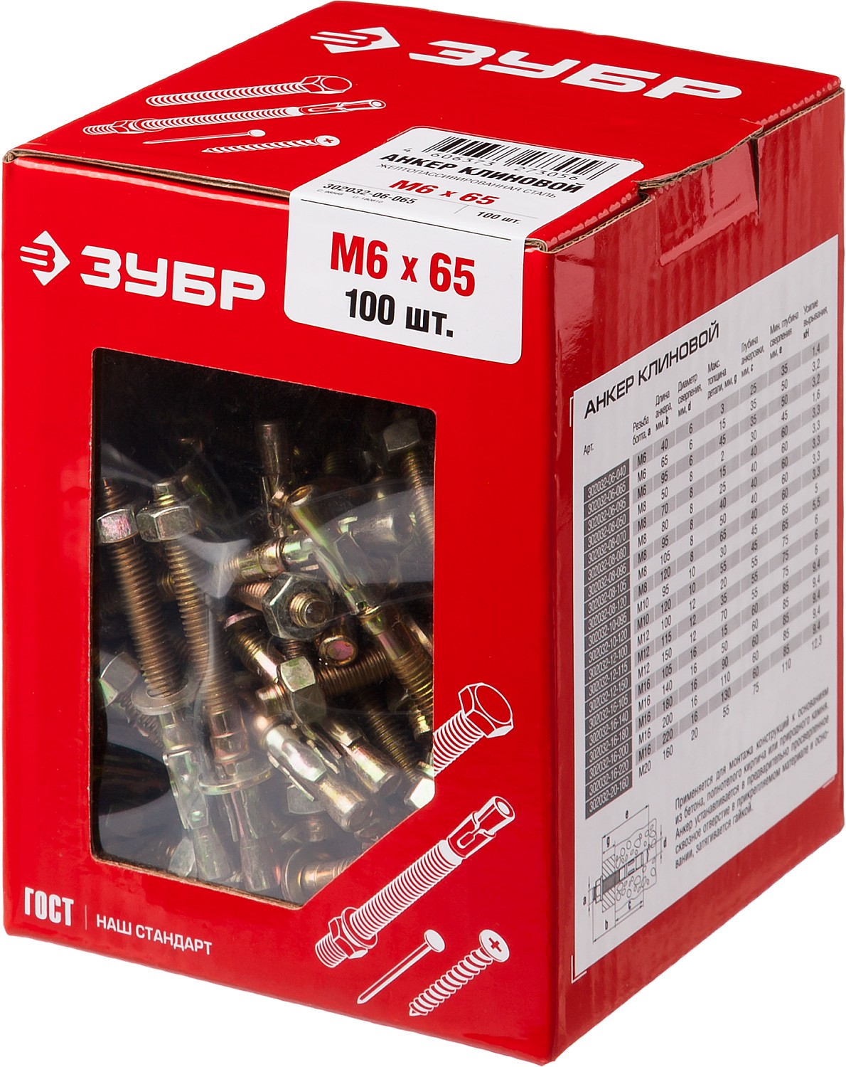 ЗУБР М6 х 65 мм, 100 шт, клиновой анкер (302032-06-065)