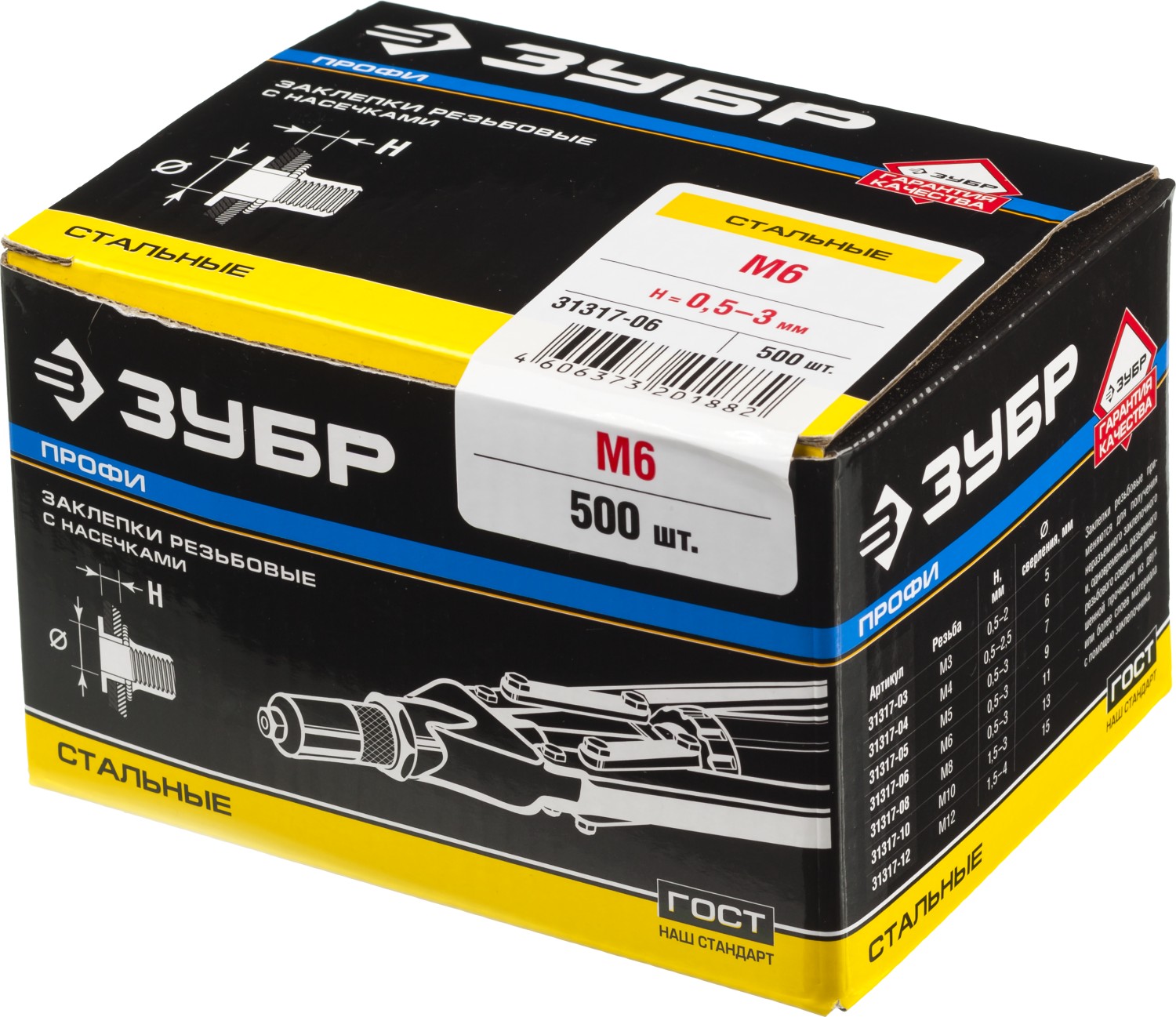 ЗУБР М6, станд. бортик, 500 шт, стальные резьбовые заклепки с насечками, Профессионал (31317-06)