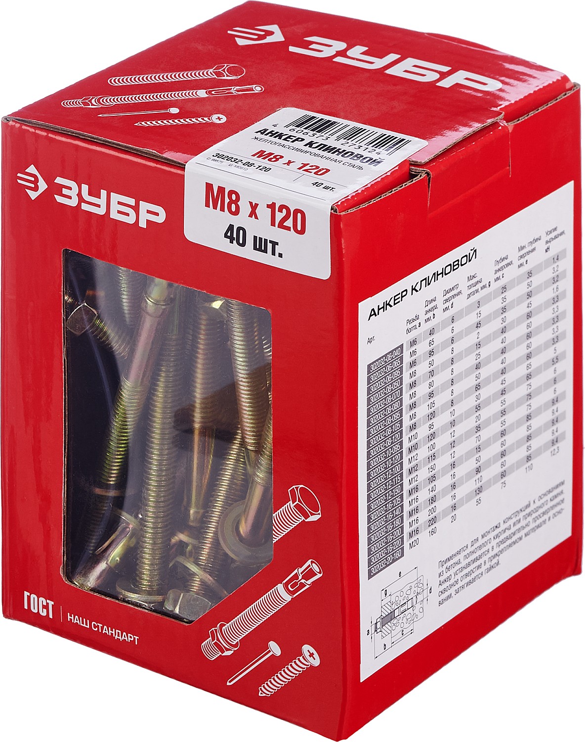 Анкеры клиновые изготовлены из высококачественной стали. Обеспечивают более высокие вырывные нагрузки по сравнению с дюбелями и позволяют крепить различные элементы и конструкции к несущим основаниям. Конструкция анкера состоит из нераспорной части, которая не участвует в закреплении, и распорной (рабочей) зоны, которая изменяет свои размеры (форму).