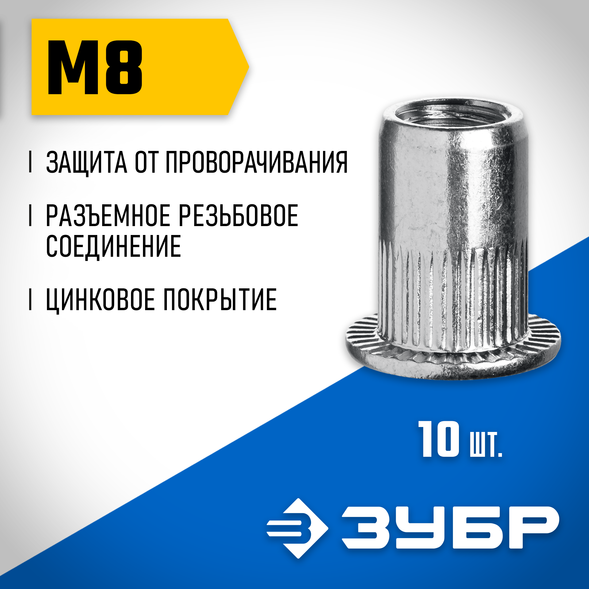 ЗУБР М8, станд. бортик, 10 шт, стальные резьбовые заклепки с насечками, Профессионал (31318-08)