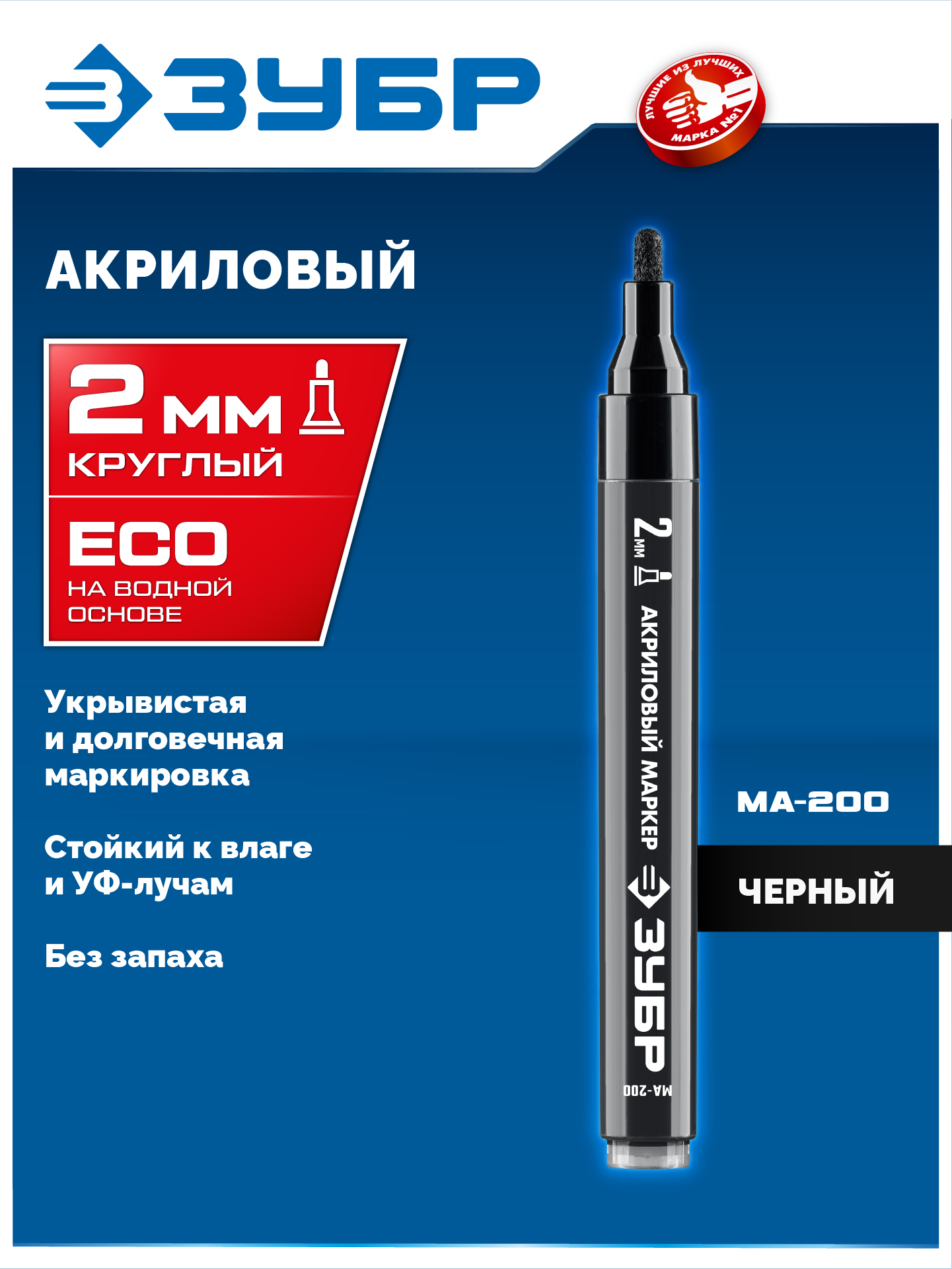 ЗУБР МА-200 черный, 2 мм акриловый маркер (06337-2)