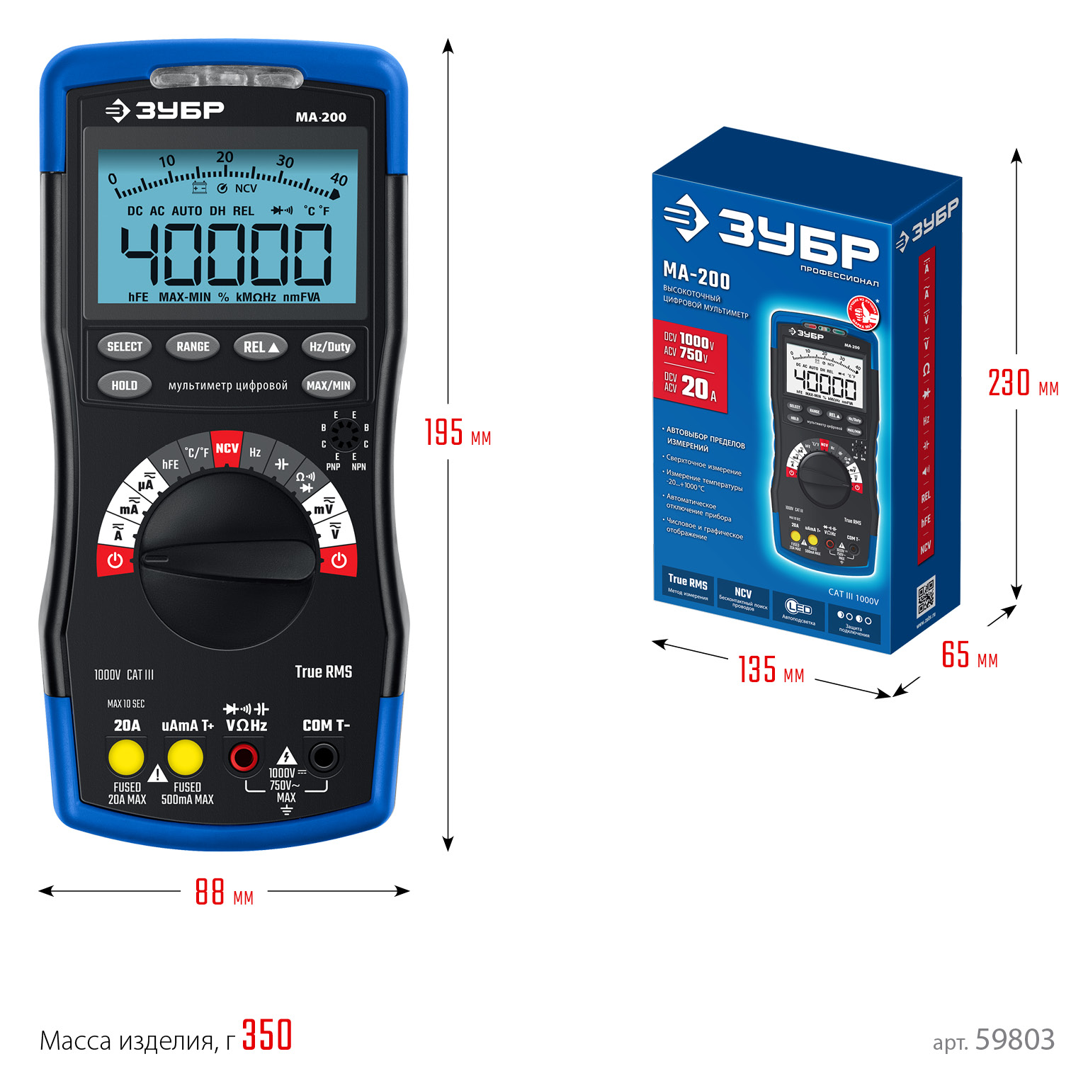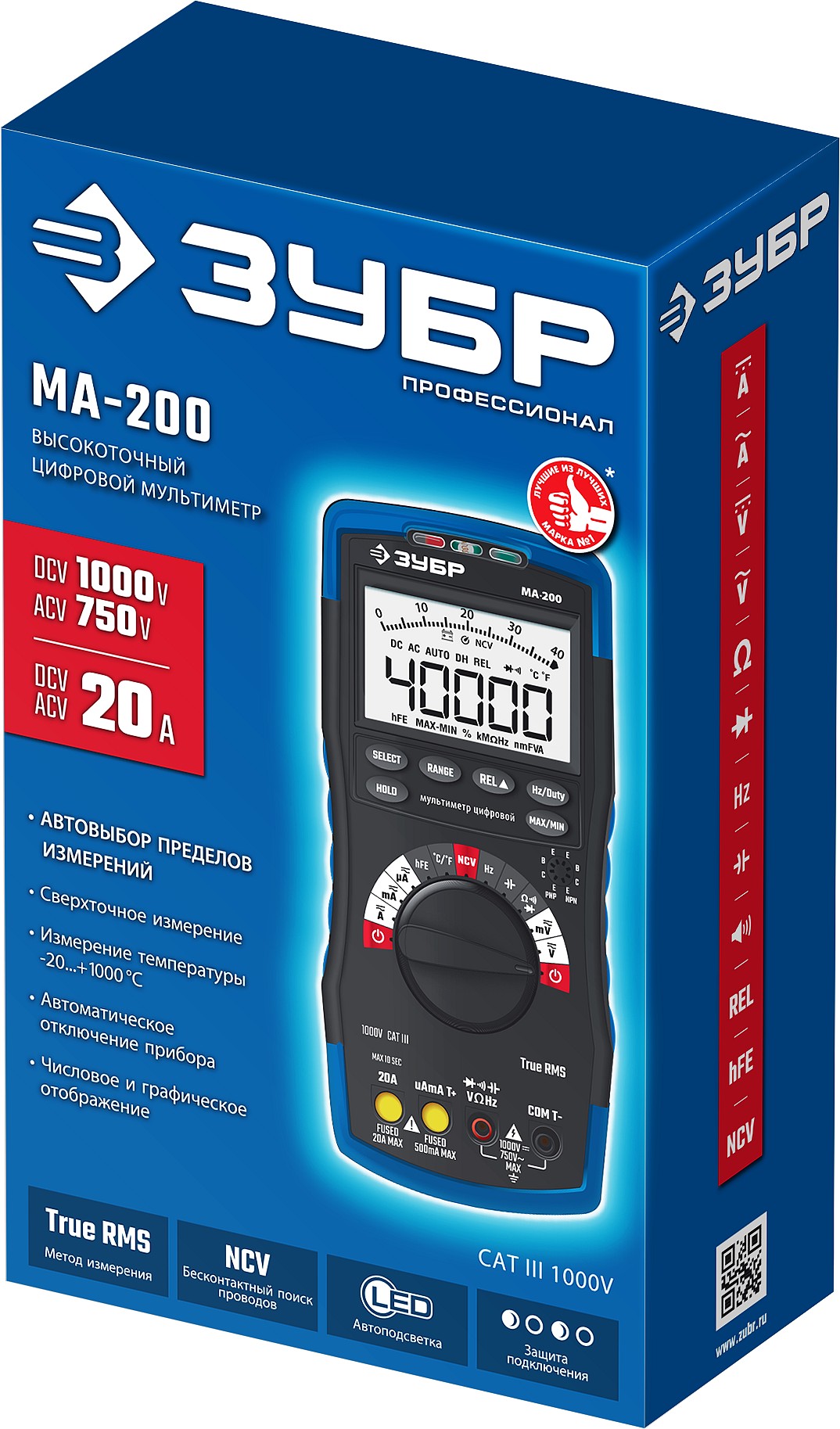 Профессиональный автоматический цифровой мультиметр ЗУБР гарантирует высокую точность измерений. Применение высококачественных материалов обеспечивает длительный срок службы.