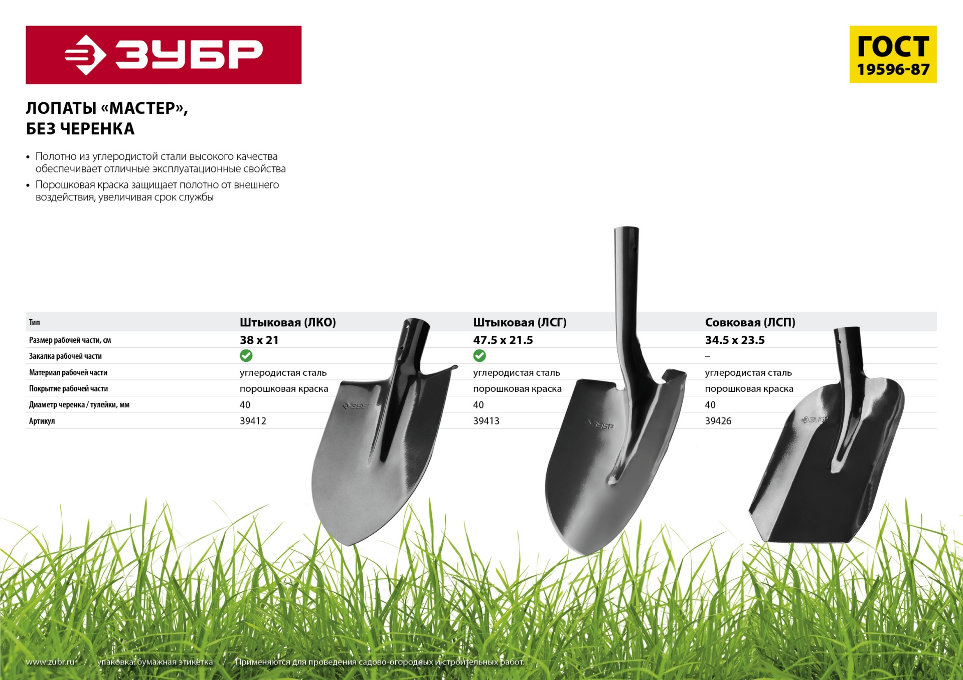 ЗУБР Мастер, 474 х 215 мм, полотно 1.6 мм, закалено, без черенка, тип ЛСГ, штыковая лопата (39413)