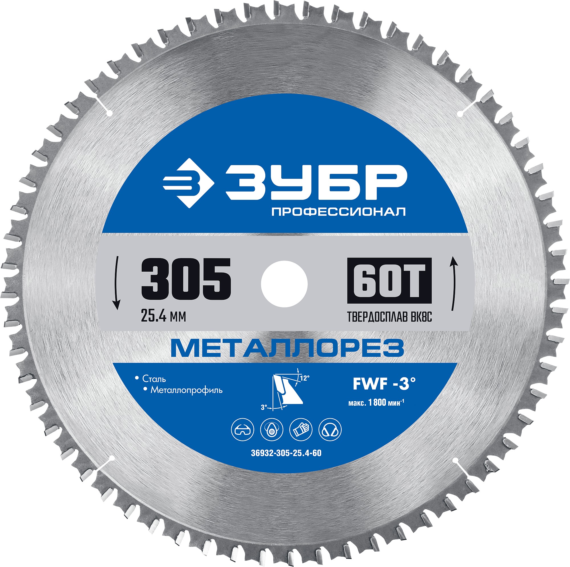 ЗУБР Металлорез, 305 х 25.4 мм, 60Т, пильный диск по металлу и металлопрофилю, Профессионал (36932-305-25.4-60)