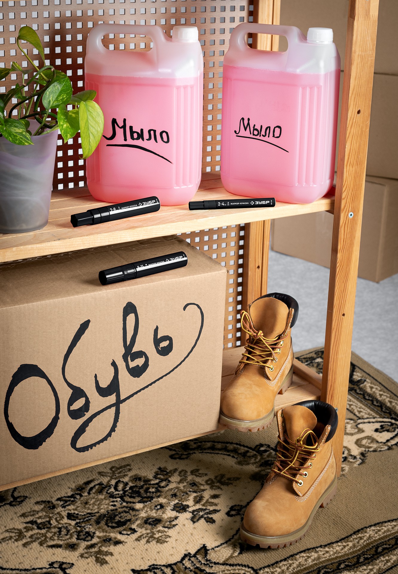 Универсальный маркер с жидкой быстросохнущей краской подходит практически для любой поверхности. Практичеки безопасен для человека, поскольку не имеет в составе токсичных веществ, таких как ксилол. Данный маркер не смывается водой, не выгорает на солнце и устойчив к температурным перепадам.