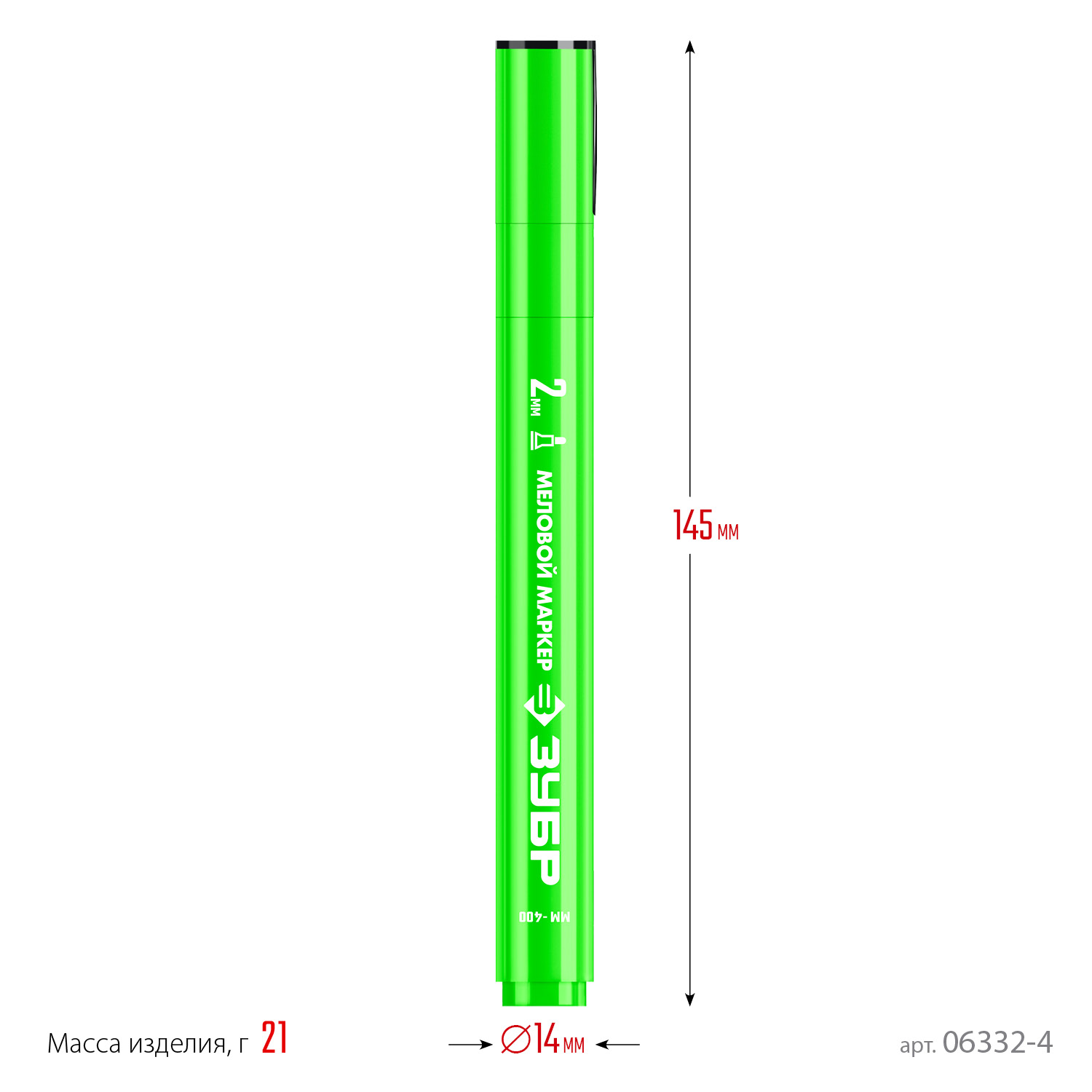 ЗУБР ММ-400 зеленый, 2 мм меловой маркер (06332-4)