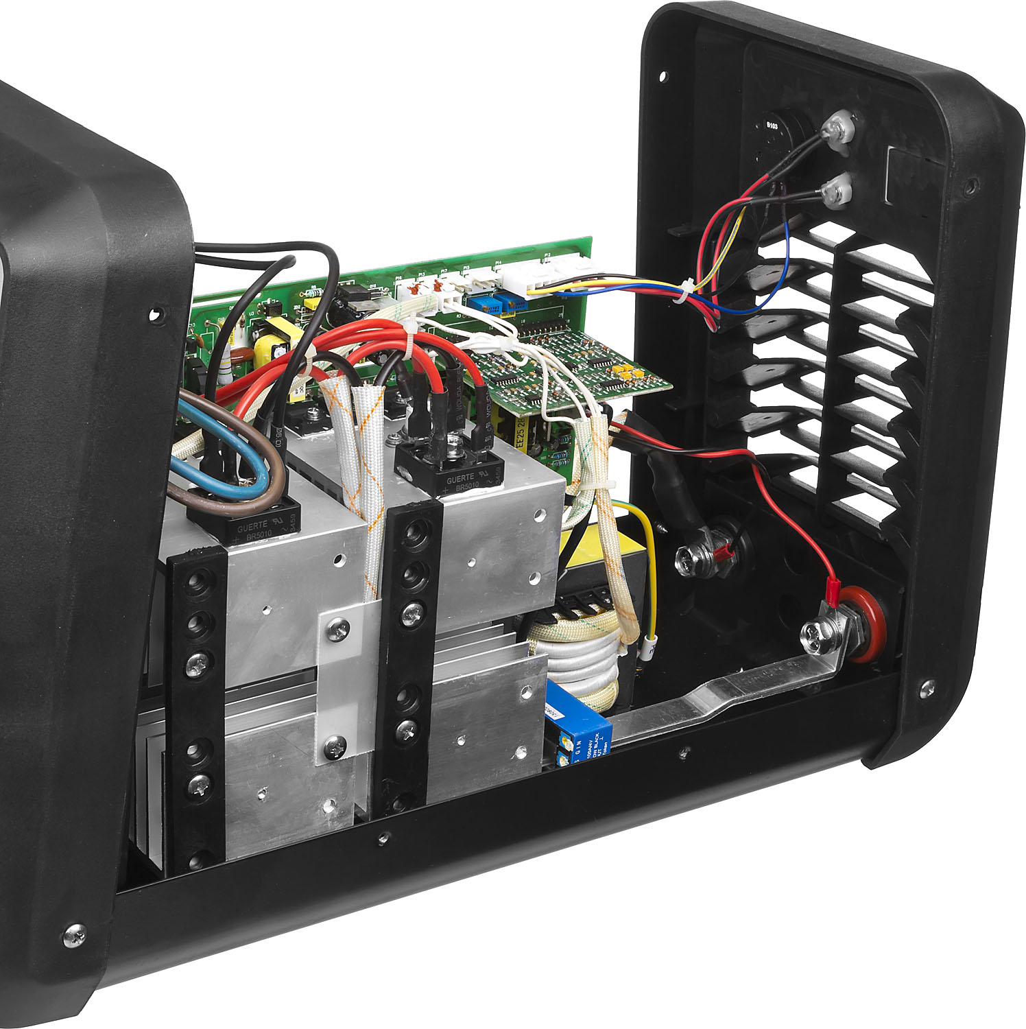 - меньшее количество силовых элементов (при той же мощности) и, соответственно, выше надежность и меньше вес и размеры по сравнению с технологией MOSFET - Система защиты от перегрузки и перегрева