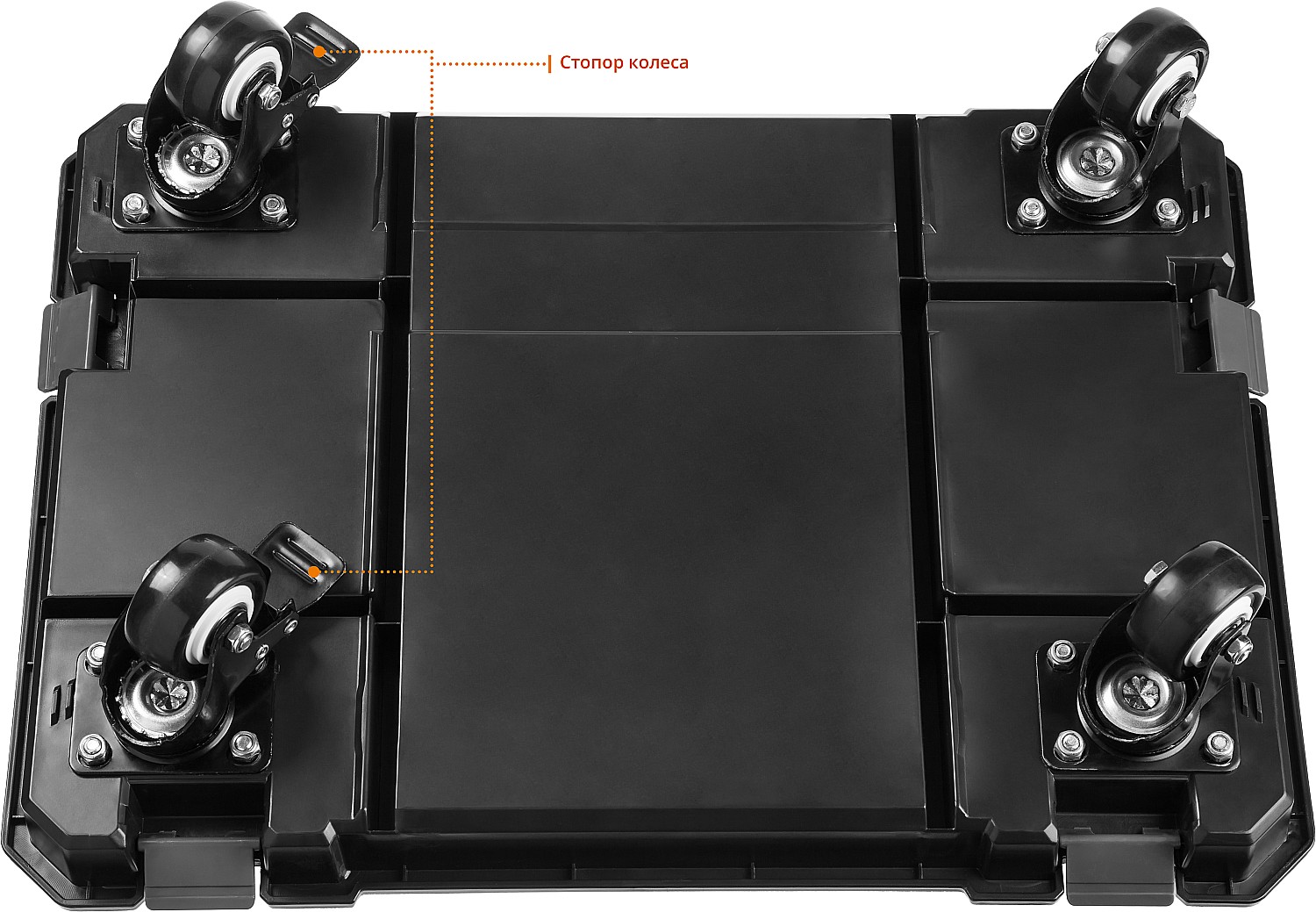 Обеспечивает удобство перевозки модульной системы ящиков внутри помещения