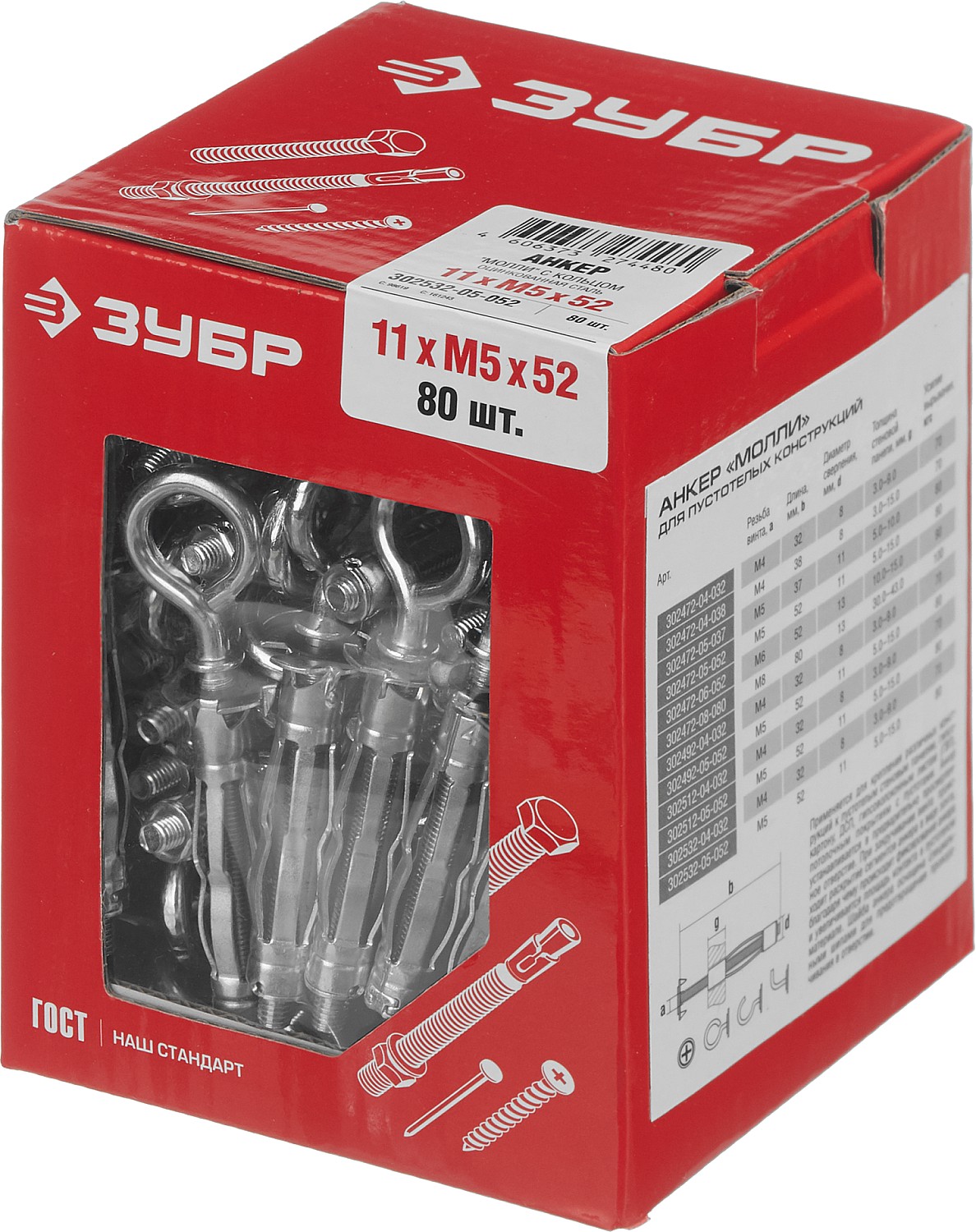 ЗУБР МОЛЛИ, М5 х 52 х 11 мм, 80 шт, анкер с кольцом для пустотелых конструкций (302532-05-052)