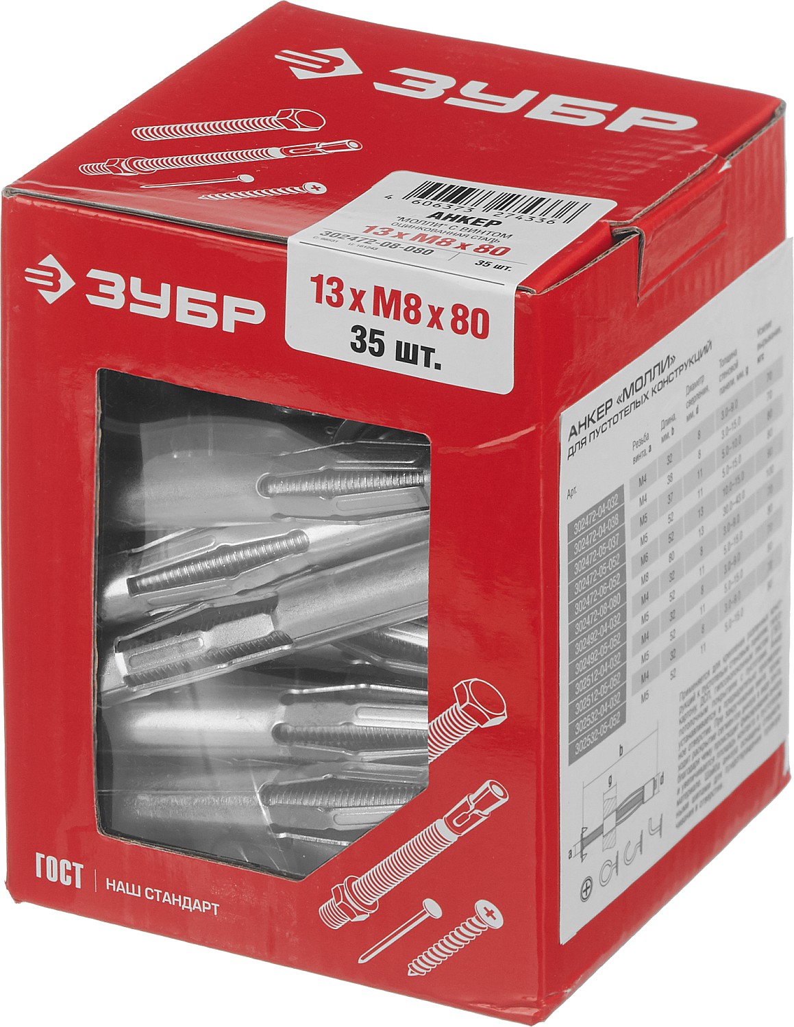 ЗУБР МОЛЛИ, М8 х 80 х 13 мм, 35 шт, анкер для пустотелых конструкций (302472-08-080)