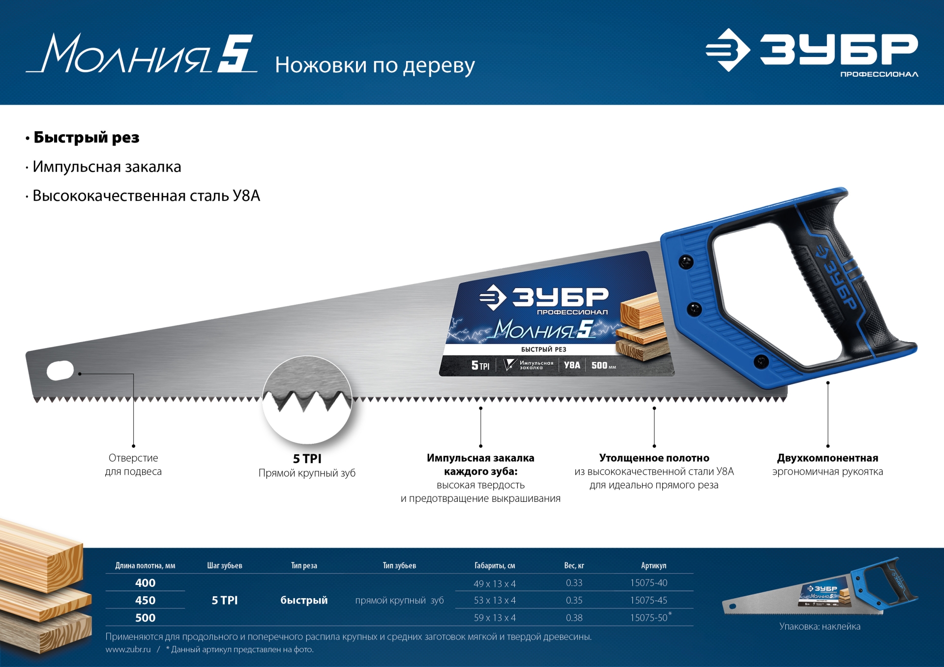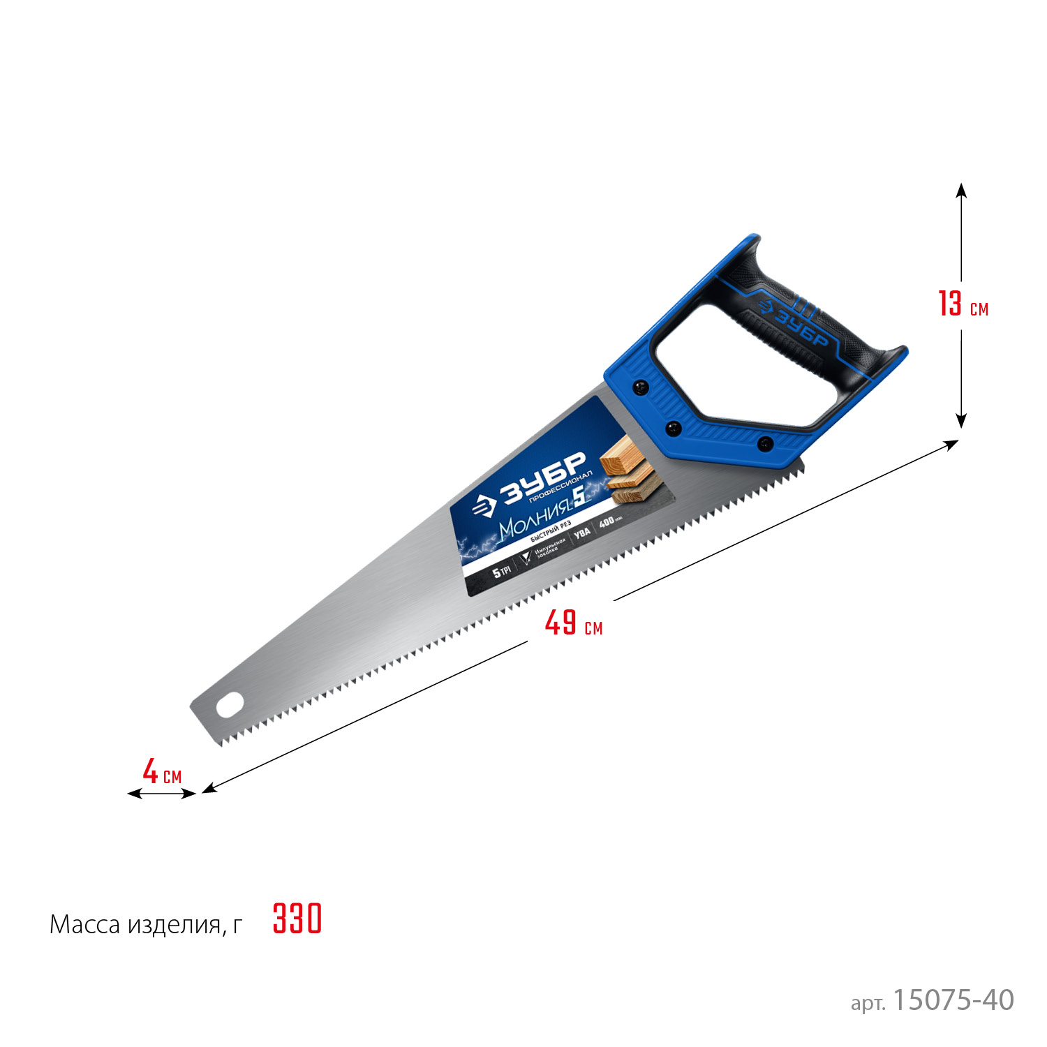ЗУБР Молния-5, 400 мм, ножовка по дереву, Профессионал (15075-40)