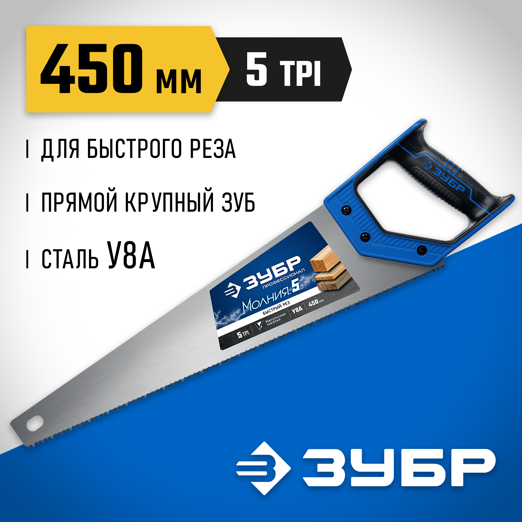 ЗУБР Молния-5, 450 мм, ножовка по дереву, Профессионал (15075-45)