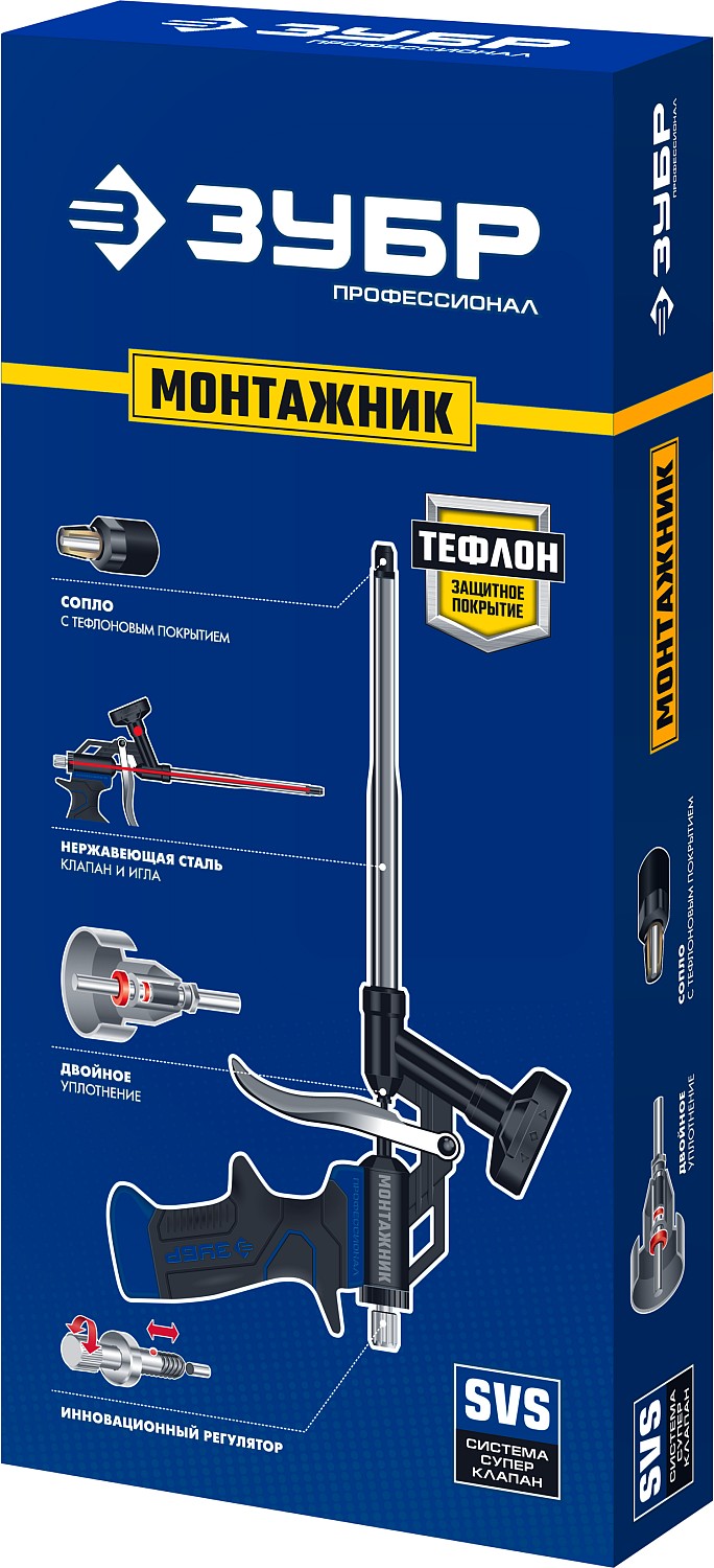 Пистолет для монтажной пены МОНТАЖНИК это инновационный инструмент, предназначенный для профессионального применения, отличающийся герметичностью, высокой надёжностью и удобством в работе. Инструмент имеет тефлоновое покрытие корпуса и сопла , что обеспечивает быструю и простую очистку.