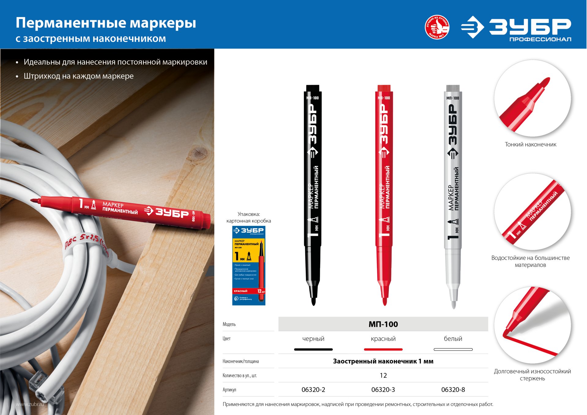 Используется для нанесения маркировки, надписей, графических и текстовых обозначений, где требуется разборчивая маркировка при проведении ремонтных, строительных и отделочных работ.