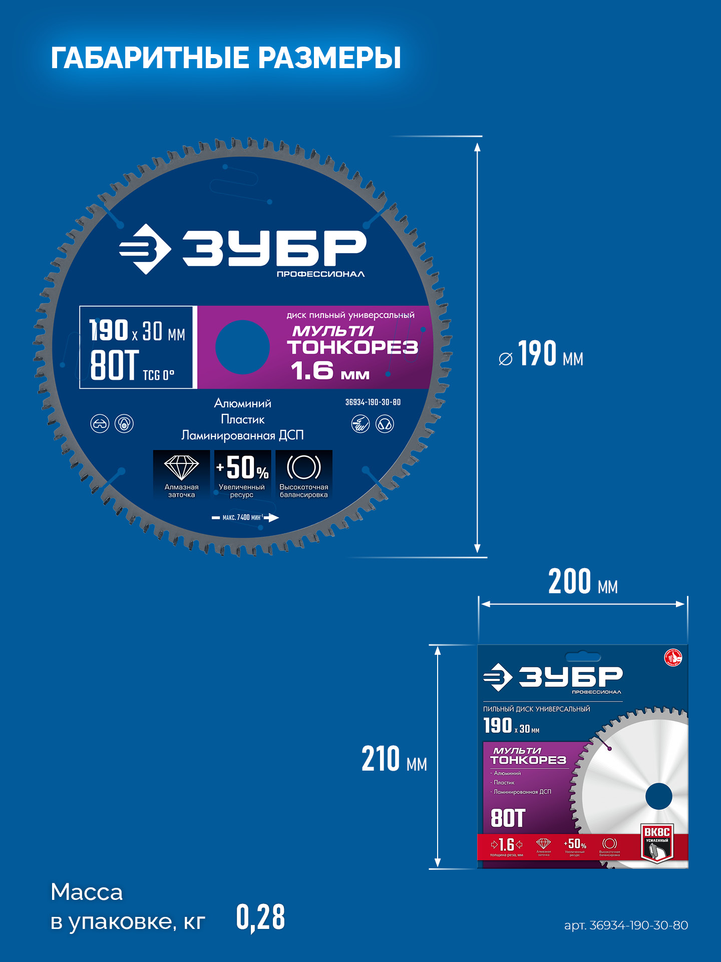 ЗУБР Мульти Тонкорез 190х30 x 1.6 мм, 80Т, диск пильный универсальный, тонкий рез, Профессионал (36934-190-30-80)