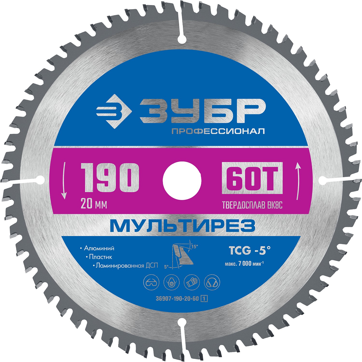 ЗУБР Мультирез, 190 x 20 мм, 60Т, пильный диск по алюминию, Профессионал (36907-190-20-60)