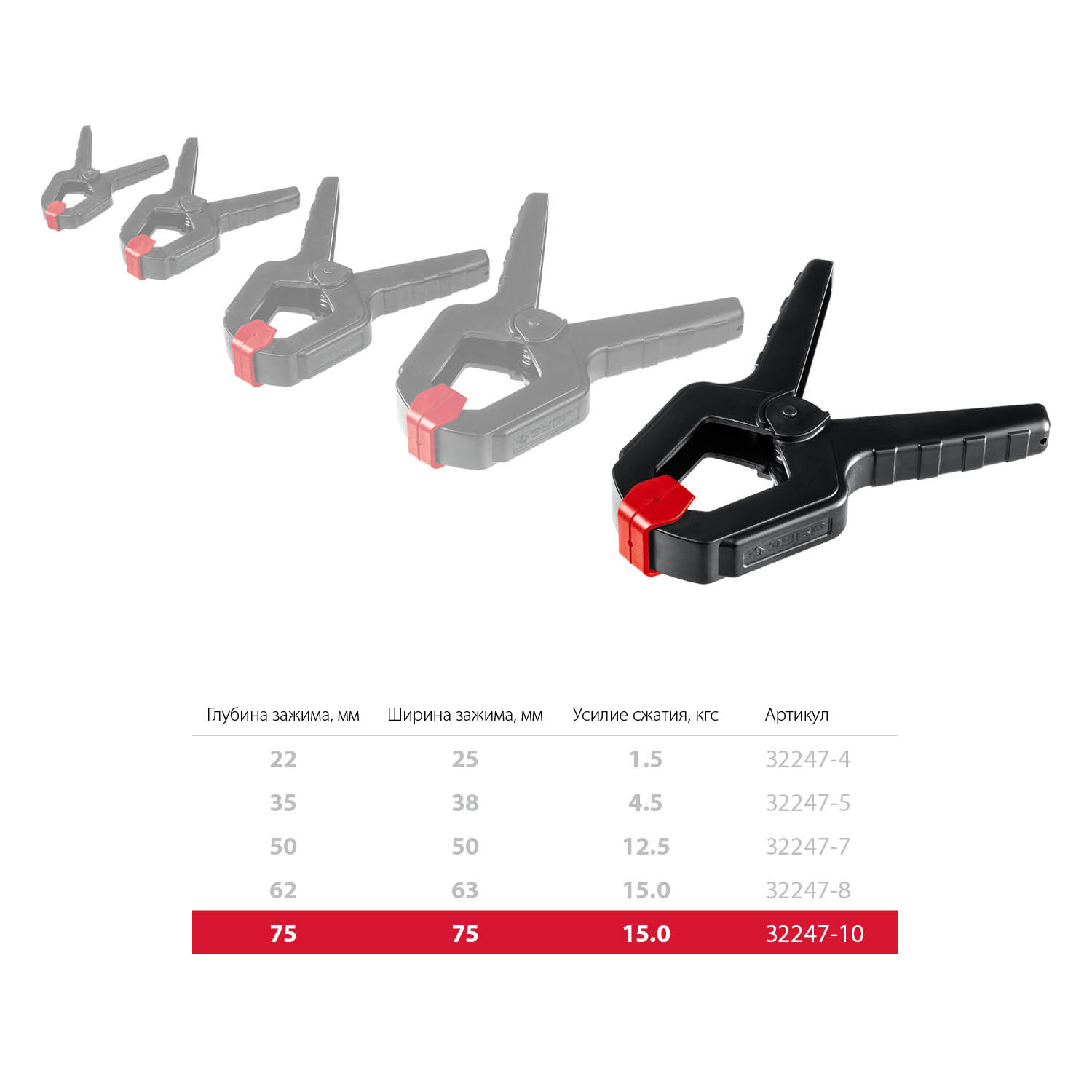 Глубина зажима, мм: