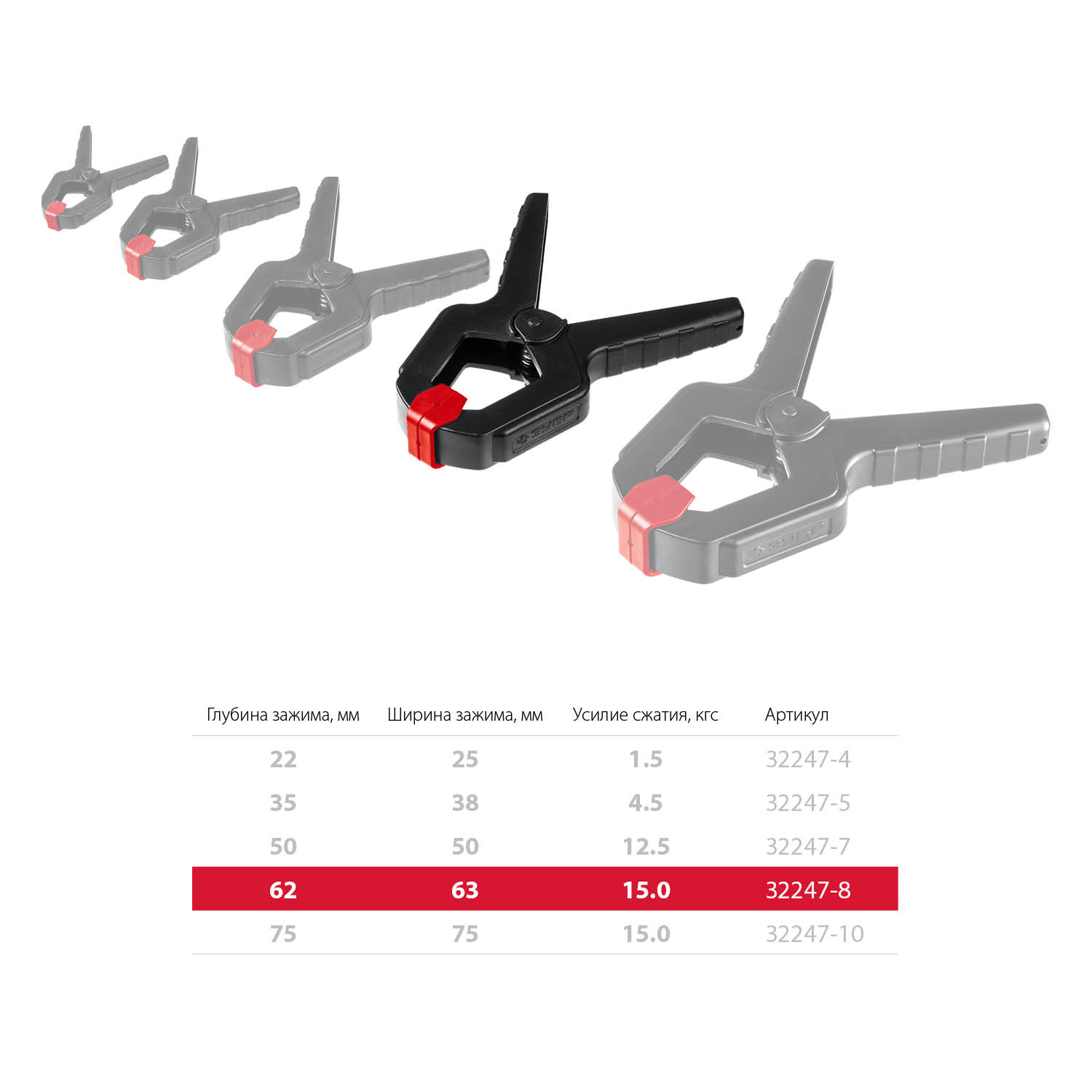 Глубина зажима, мм: