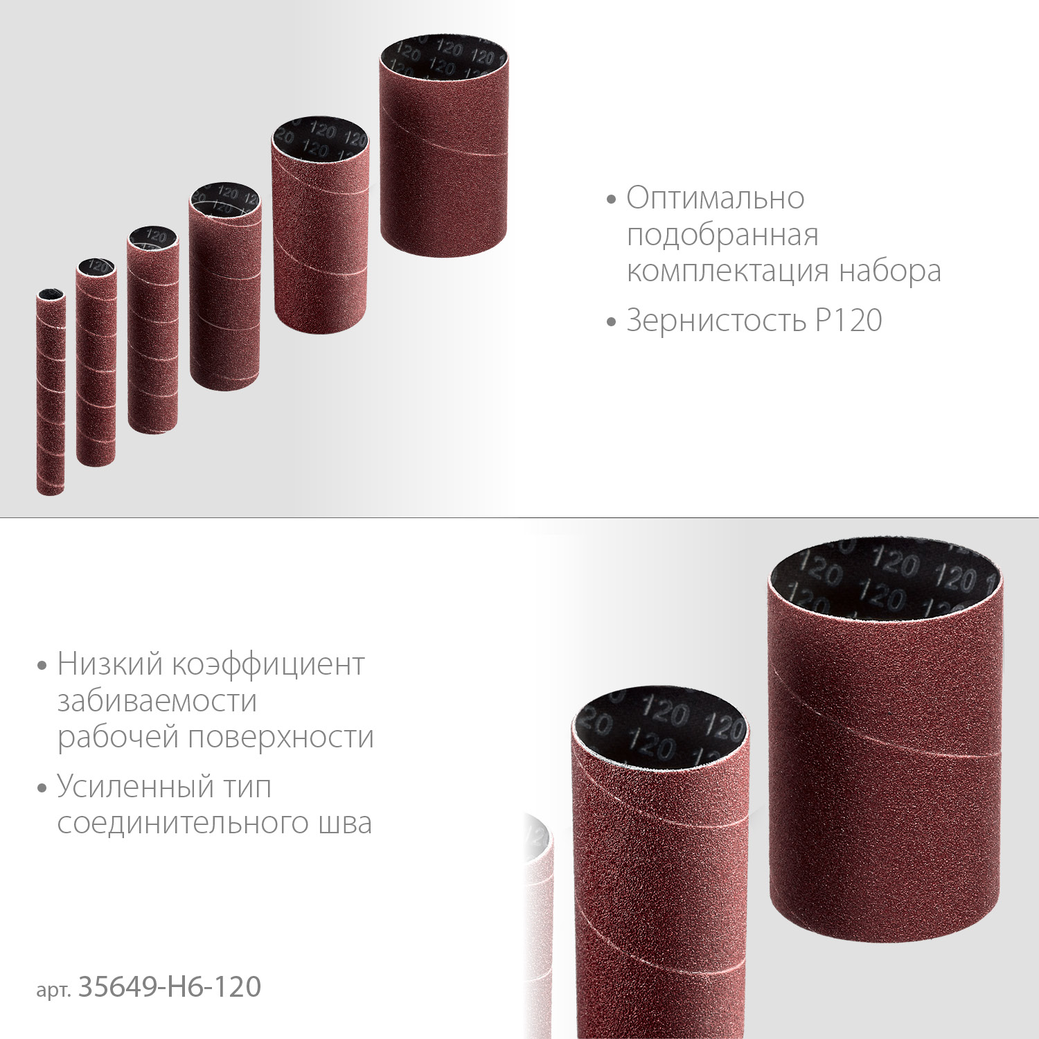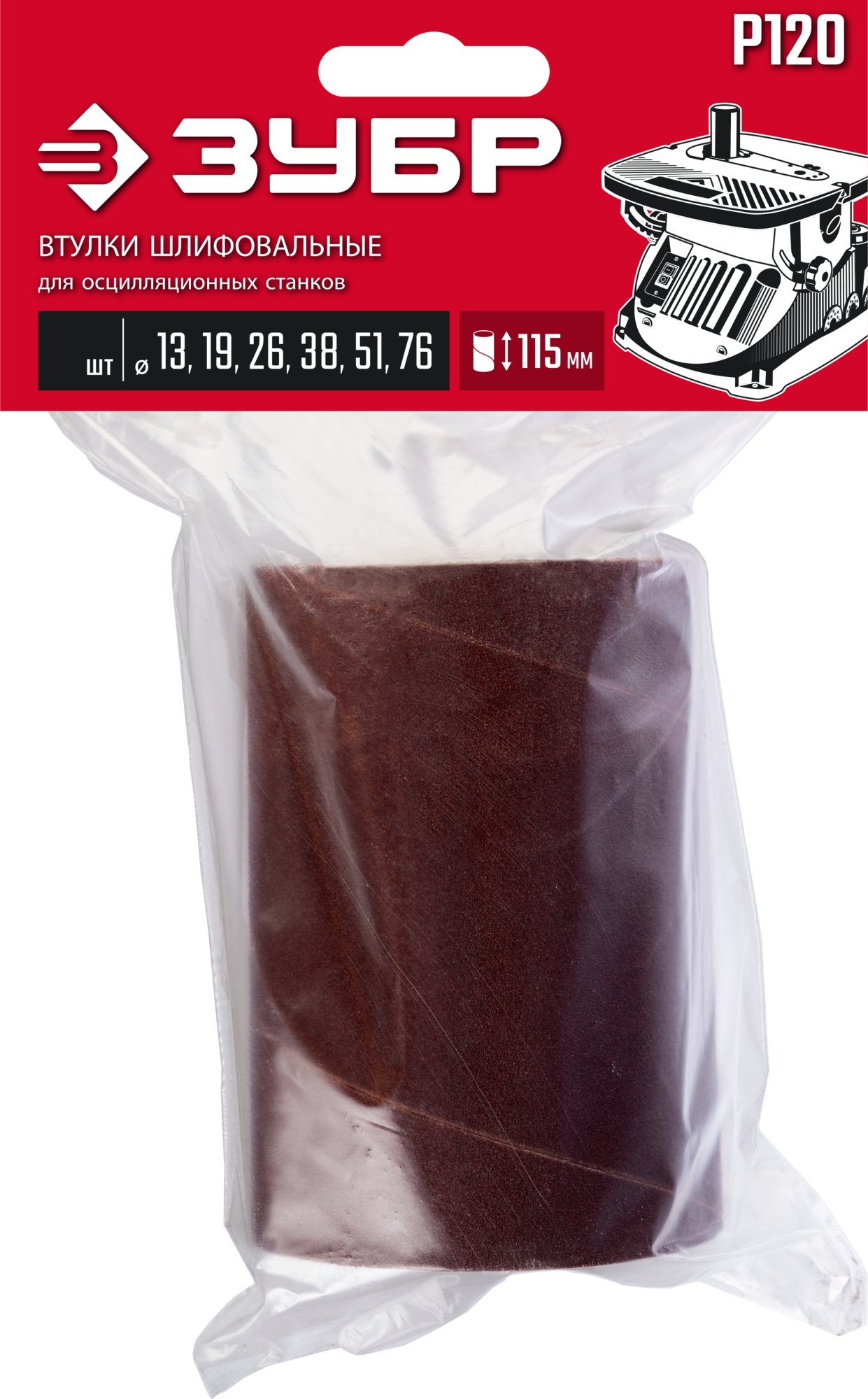 ЗУБР набор 6 шт: 13, 19, 26, 38, 51, 76 мм, высота 115 мм, Р120, втулки шлифовальные для станка СШО-500 МАСТЕР (35649-H6-120)