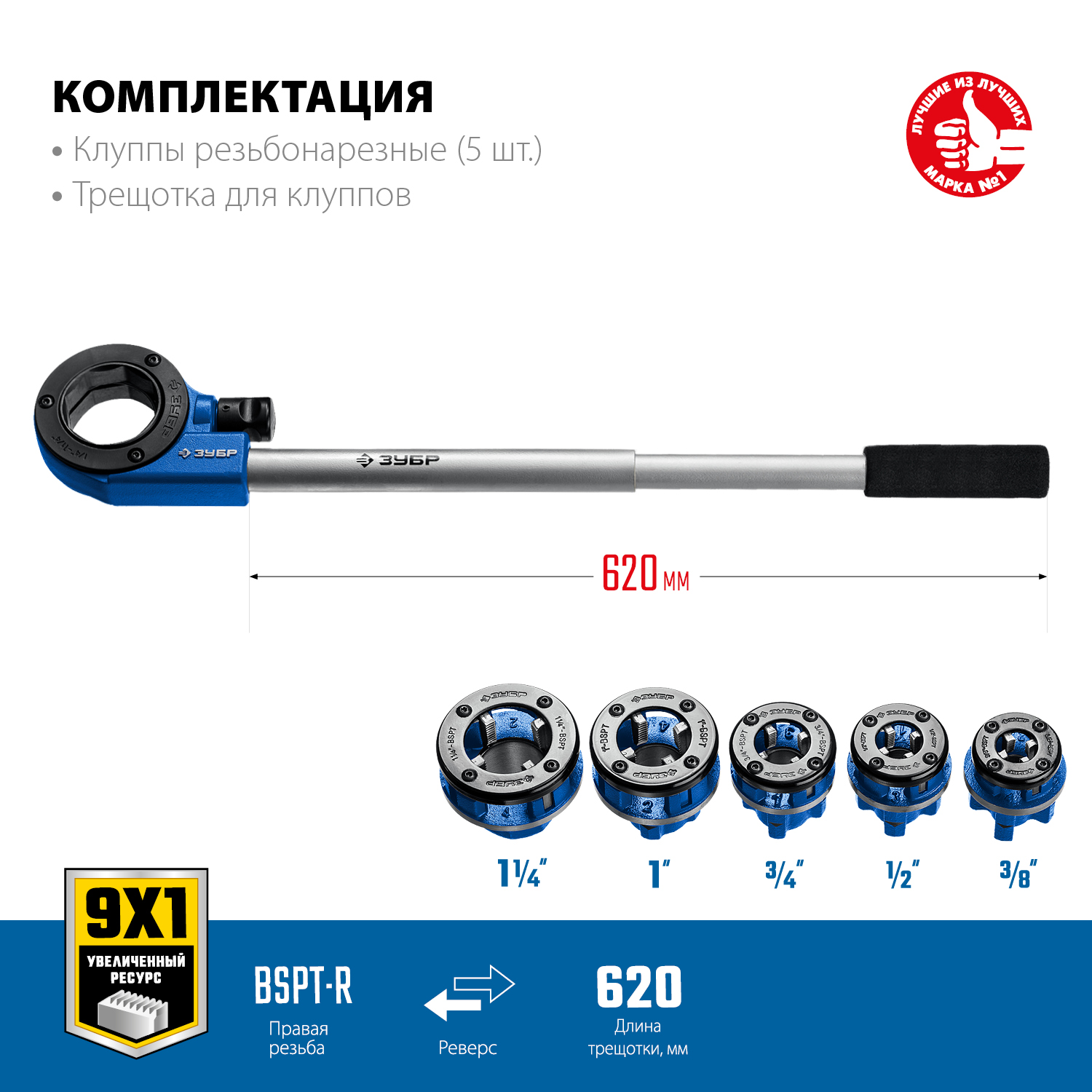 - Набор включает в себя популярные размеры клуппов для нарезания резьбы на металлических трубах