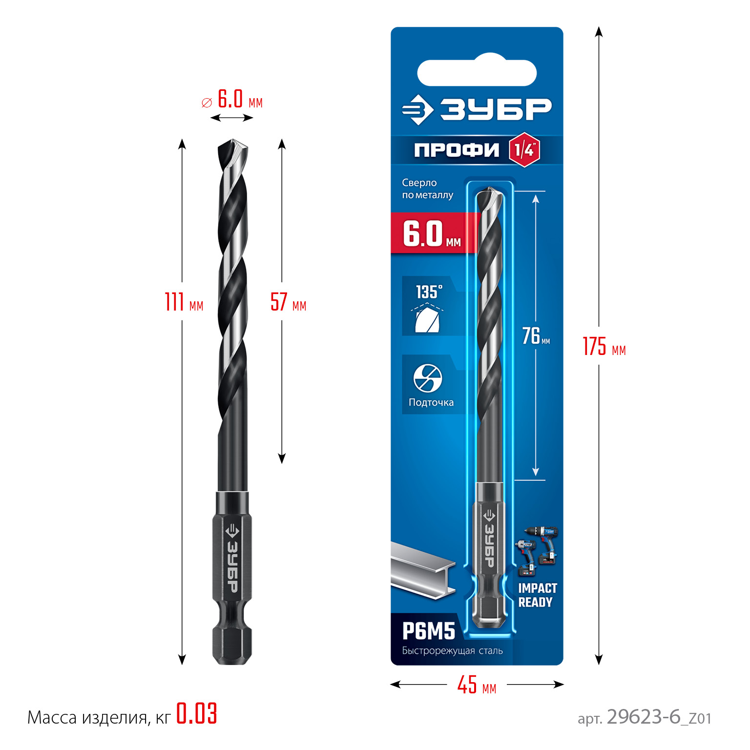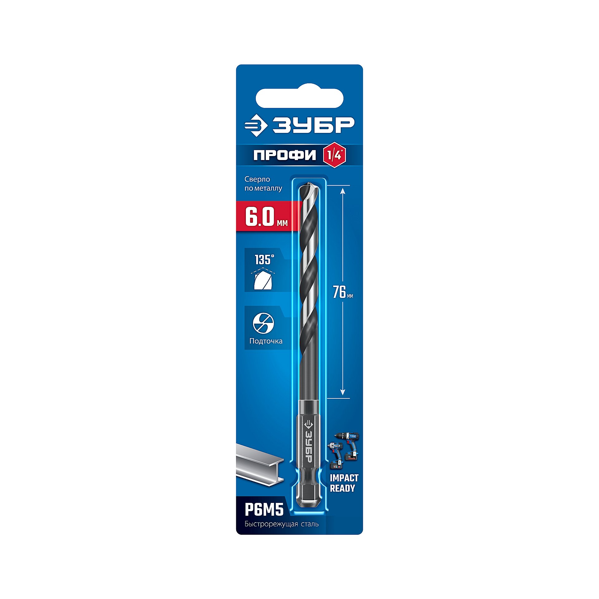 - -Шестигранный хвостовик с проточкой исключает возможность проворачивание сверла в патроне и облегчает замену инструмента,