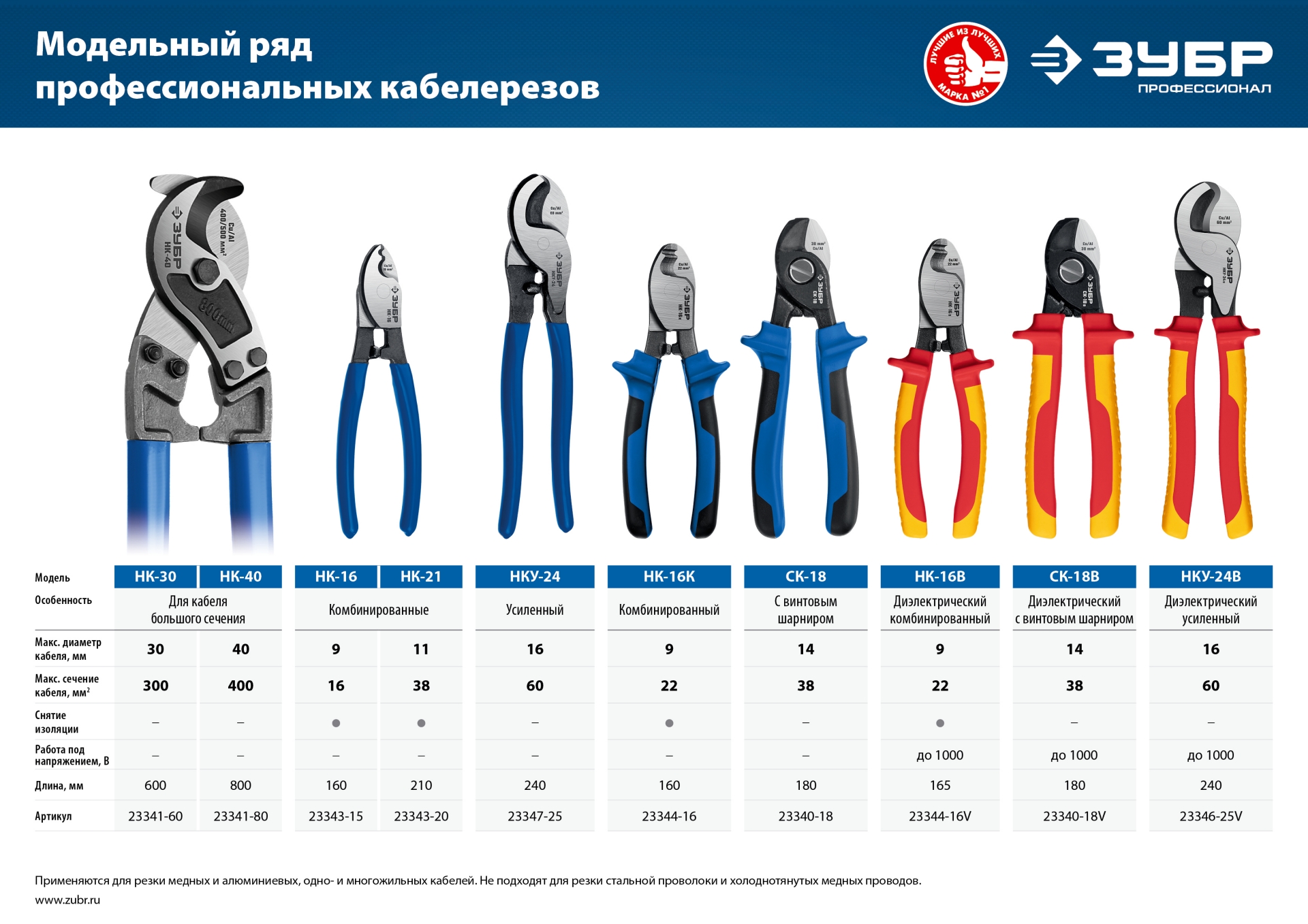 Кабелерезы ЗУБР изготовлены из высококачественной стали, предназначены для профессионального применения. Обладает повышенным ресурсом, обеспечивает высокое качество электромонтажных работ.