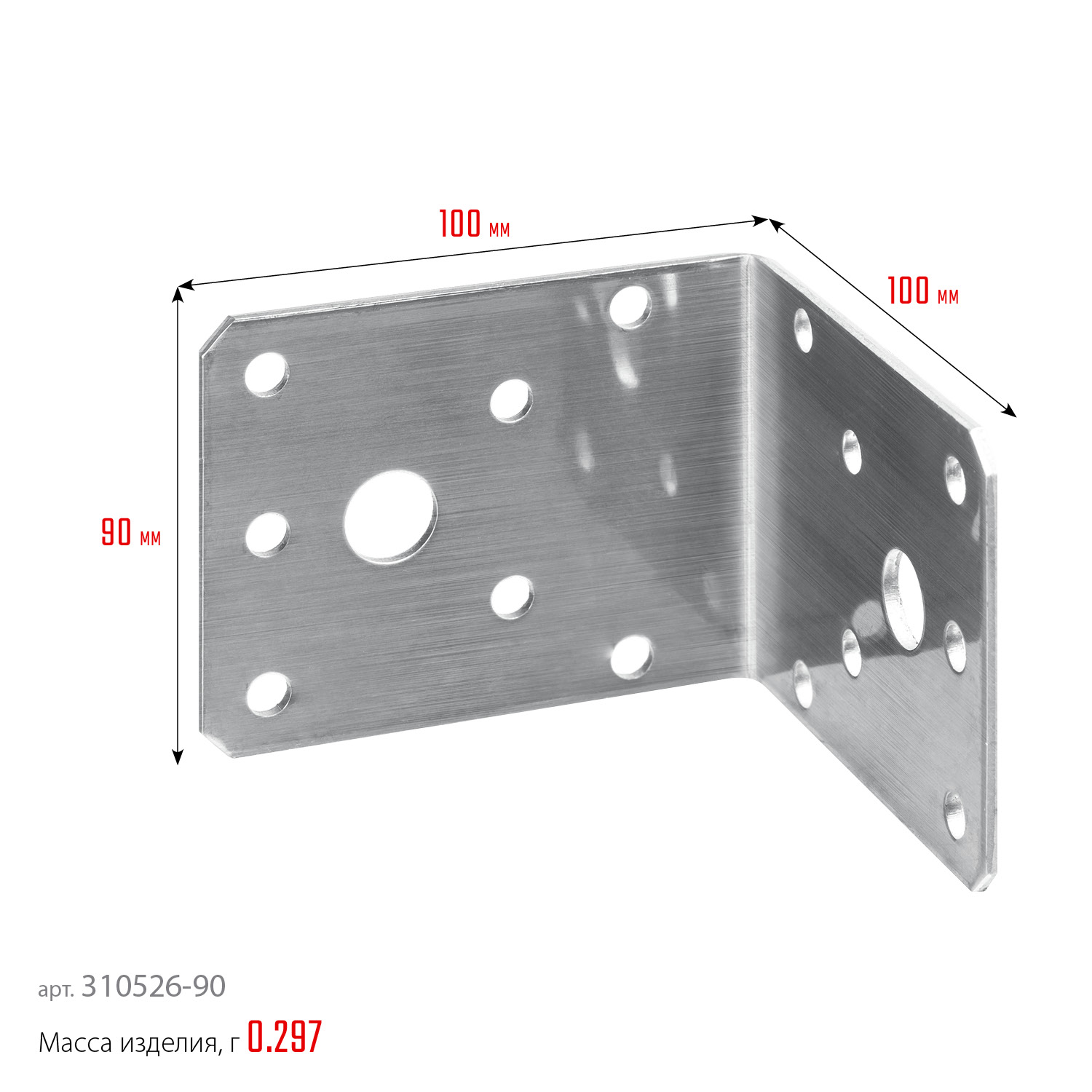 ЗУБР НКУ-2.0, 90 x 100 x 100 x 2 мм, нержавеющий крепежный уголок, Профессионал (310526-90)