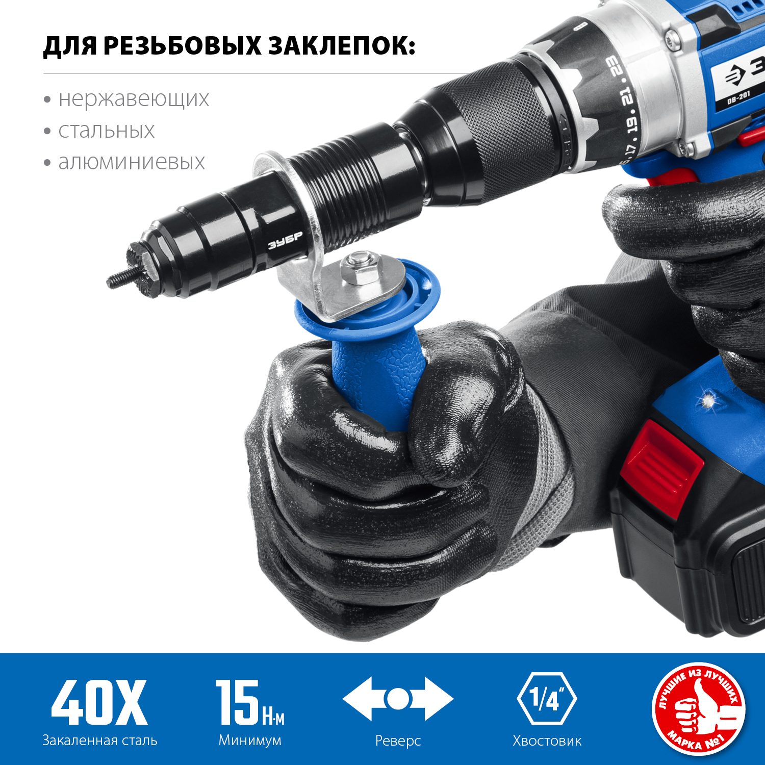 Насадка-заклепочник ЗУБР - это надежный и компактный инструмент для формирования соединений с помощью заклепок.