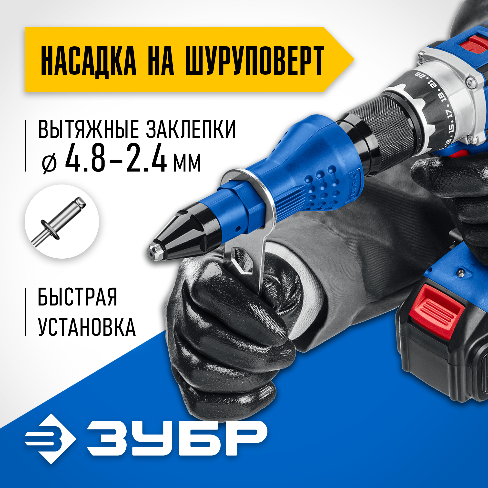 Насадка-заклепочник ЗУБР - это надежный и компактный инструмент для формирования соединений с помощью заклепок.