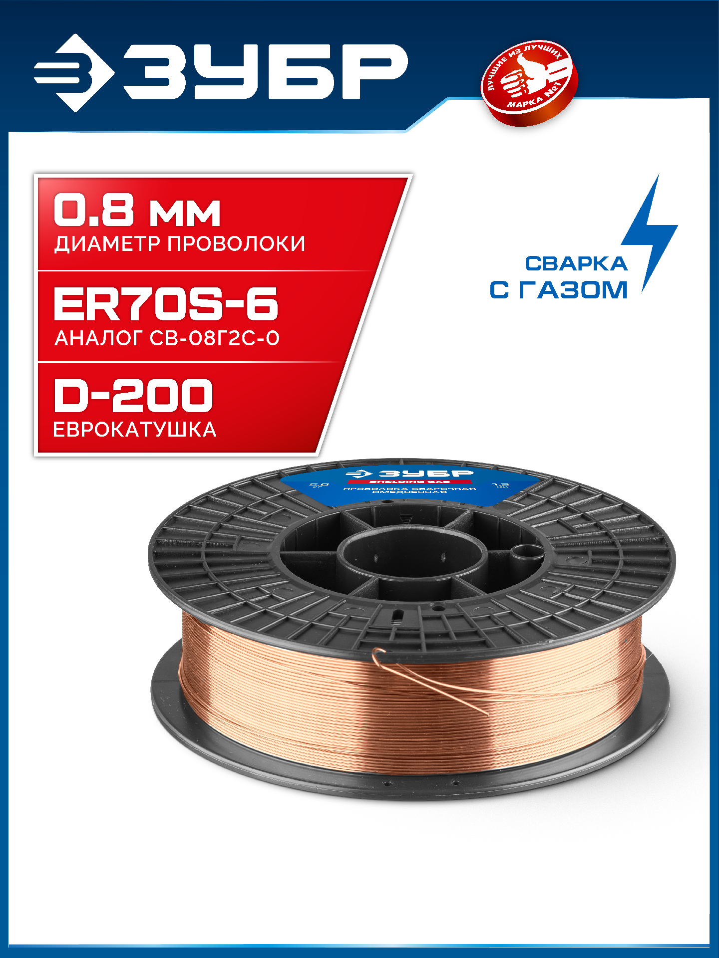 ЗУБР О-СП, d 0.8 мм, 5 кг, омеднённая сварочная проволока, тип ER70S-6 (аналог Св-08Г2С-О), Профессионал (40075-0.8-5)