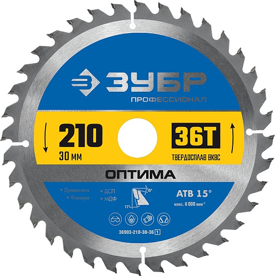 ЗУБР Оптима, 210 x 30 мм, 36Т, пильный диск по дереву, Профессионал (36903-210-30-36)