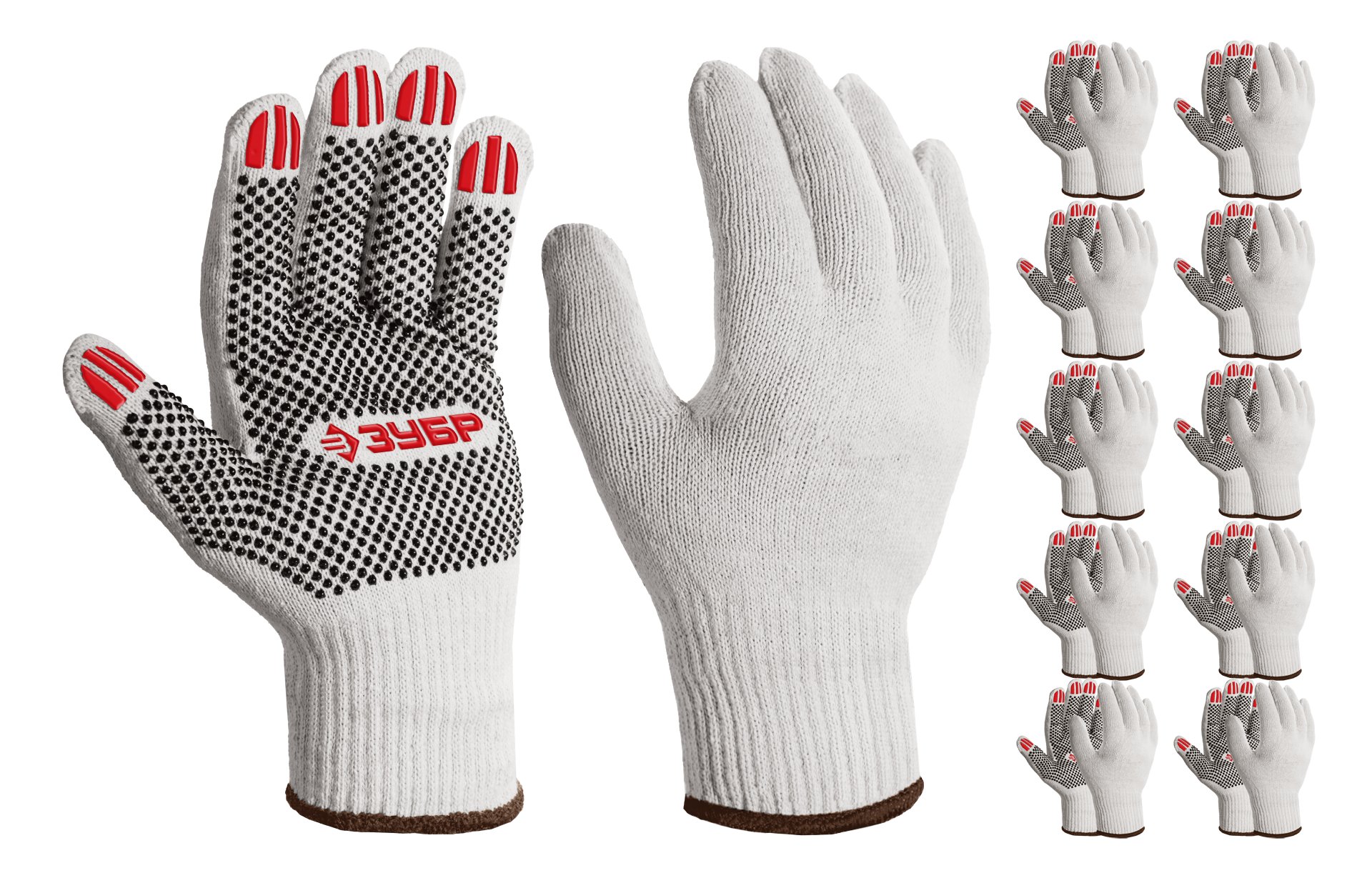 ЗУБР ОПТИМА, XL (10), х/б перчатки с ПВХ покрытием (точка), 10 класс, 10 пар (11440-XL10)