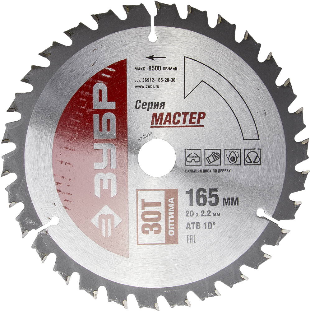 ЗУБР Оптимальный рез, 165 x 20 мм, 30T, пильный диск по дереву (36912-165-20-30)