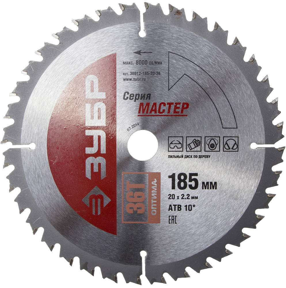 ЗУБР Оптимальный рез, 185 x 20 мм, 36Т, пильный диск по дереву (36912-185-20-36)