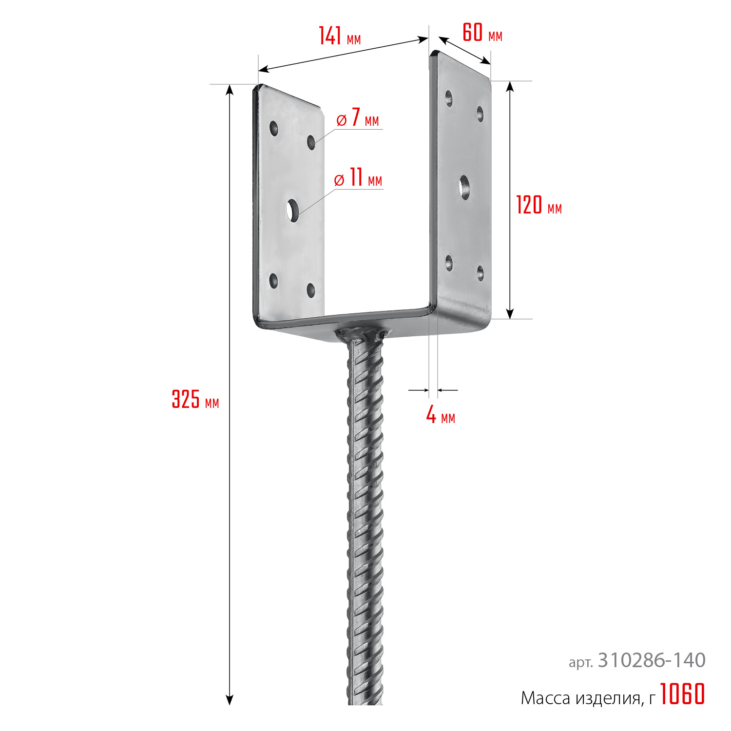ЗУБР ОС-U, 141 x 120 x 60 мм, U-образное основание столба (310286-140)