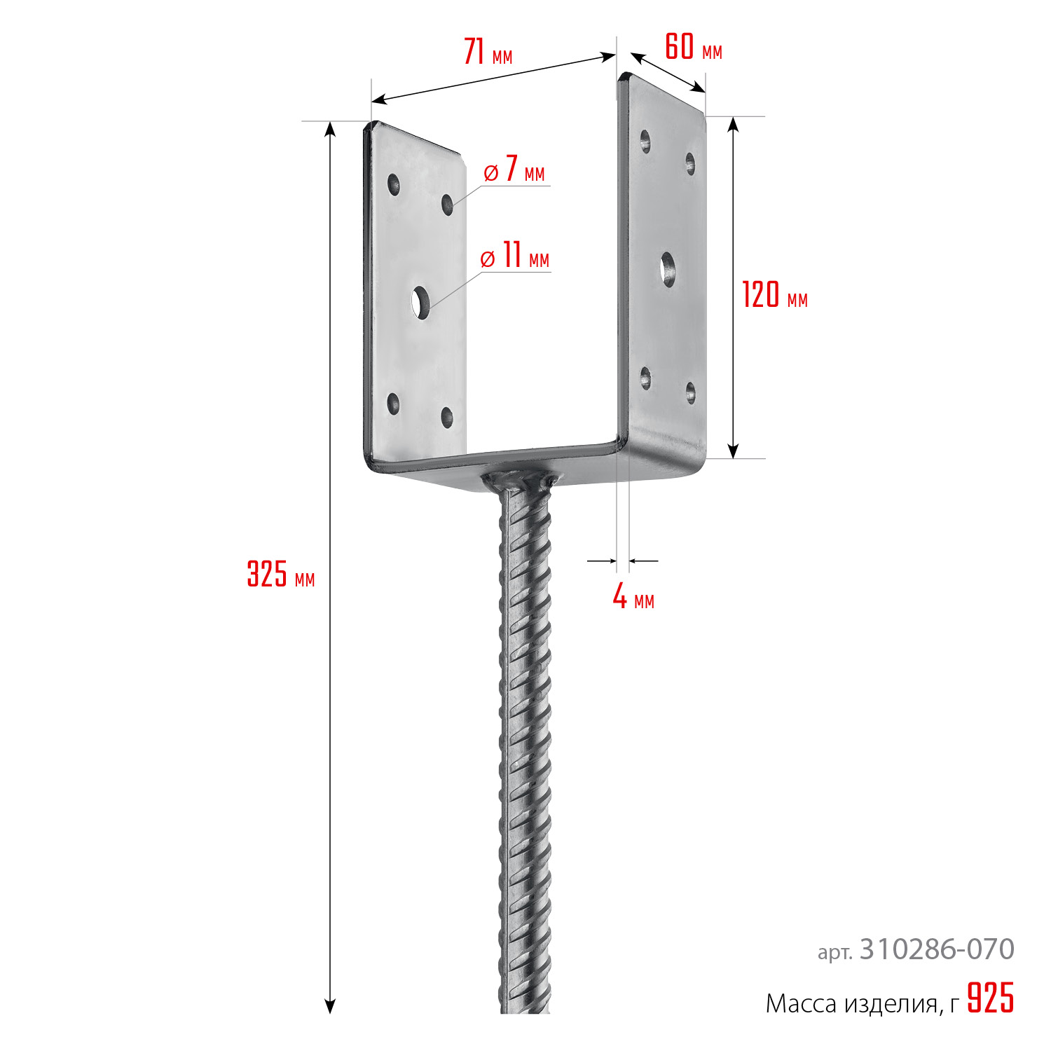 ЗУБР ОС-U, 71 x 120 x 60 мм, U-образное основание столба (310286-070)