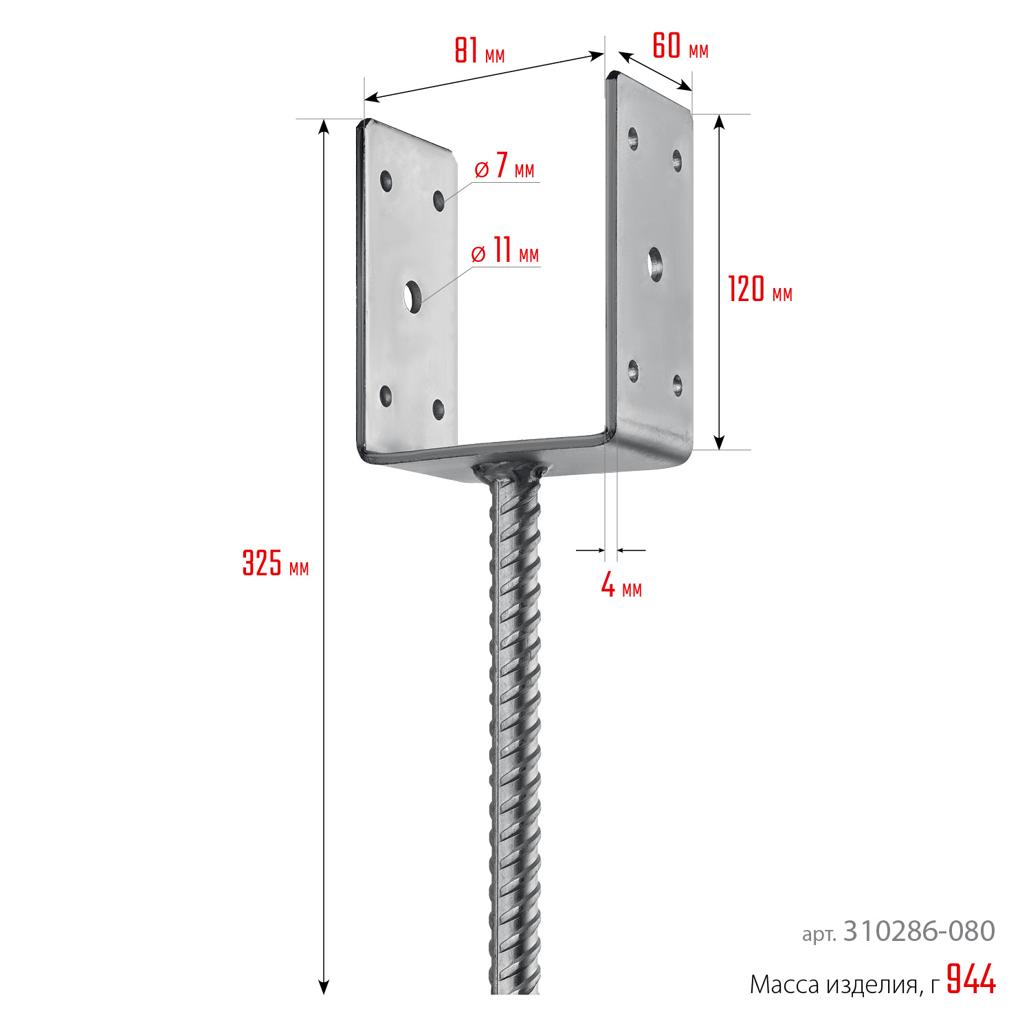 • Ножка из арматуры обеспечивает прочное соединение с бетонным основанием