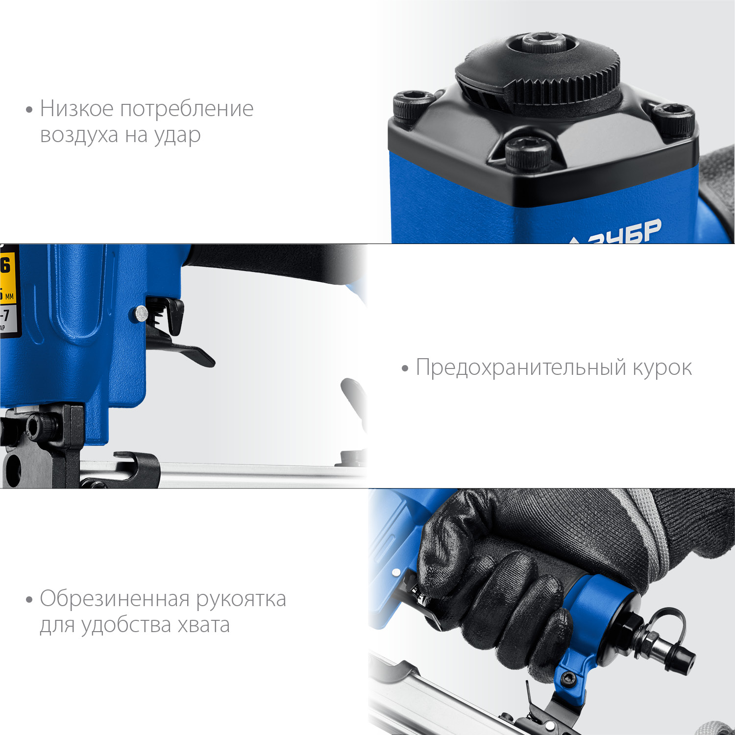 - Низкое потребление воздуха на удар