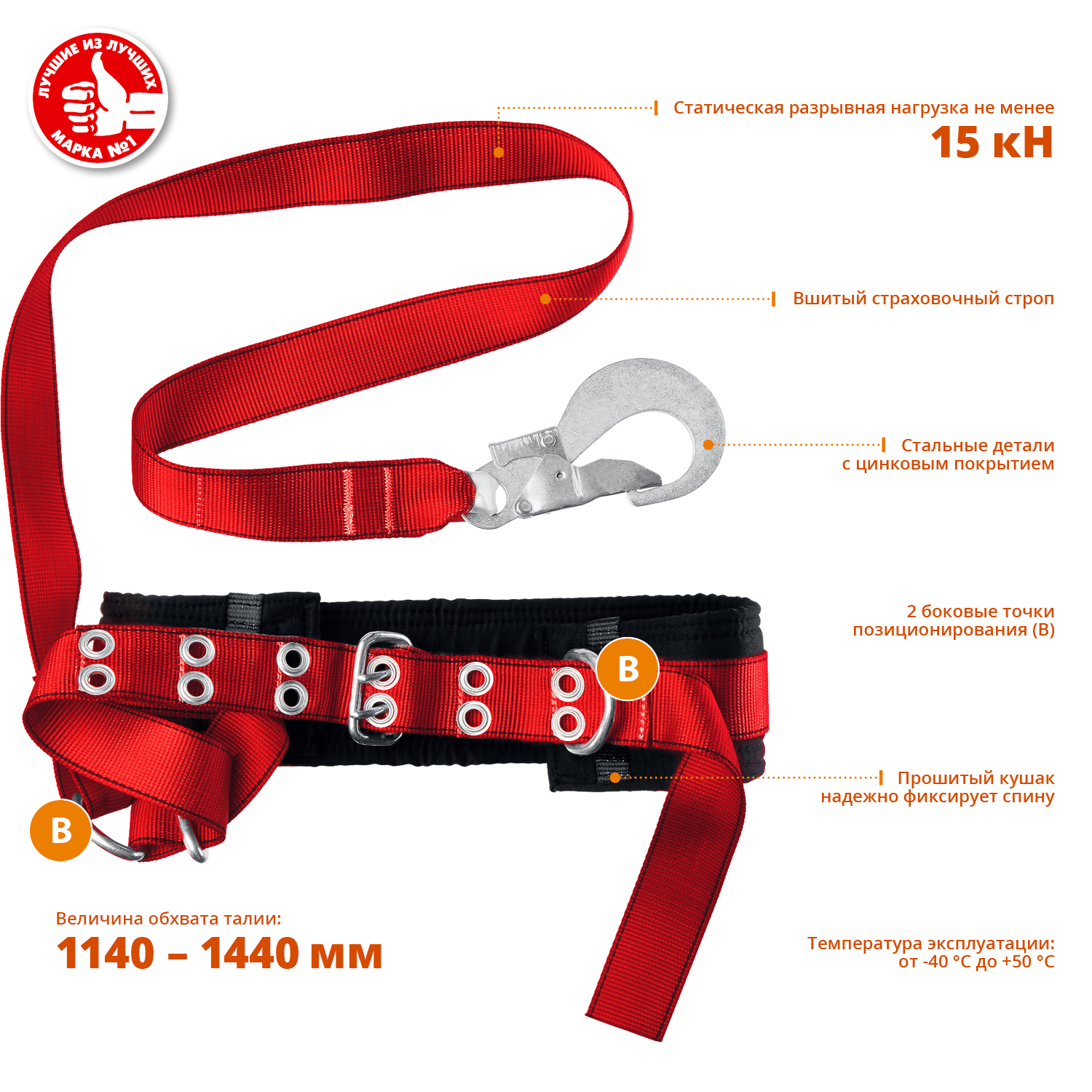Безлямочный пояс «ЗУБР» – надежное средство защиты от падения с высоты.
