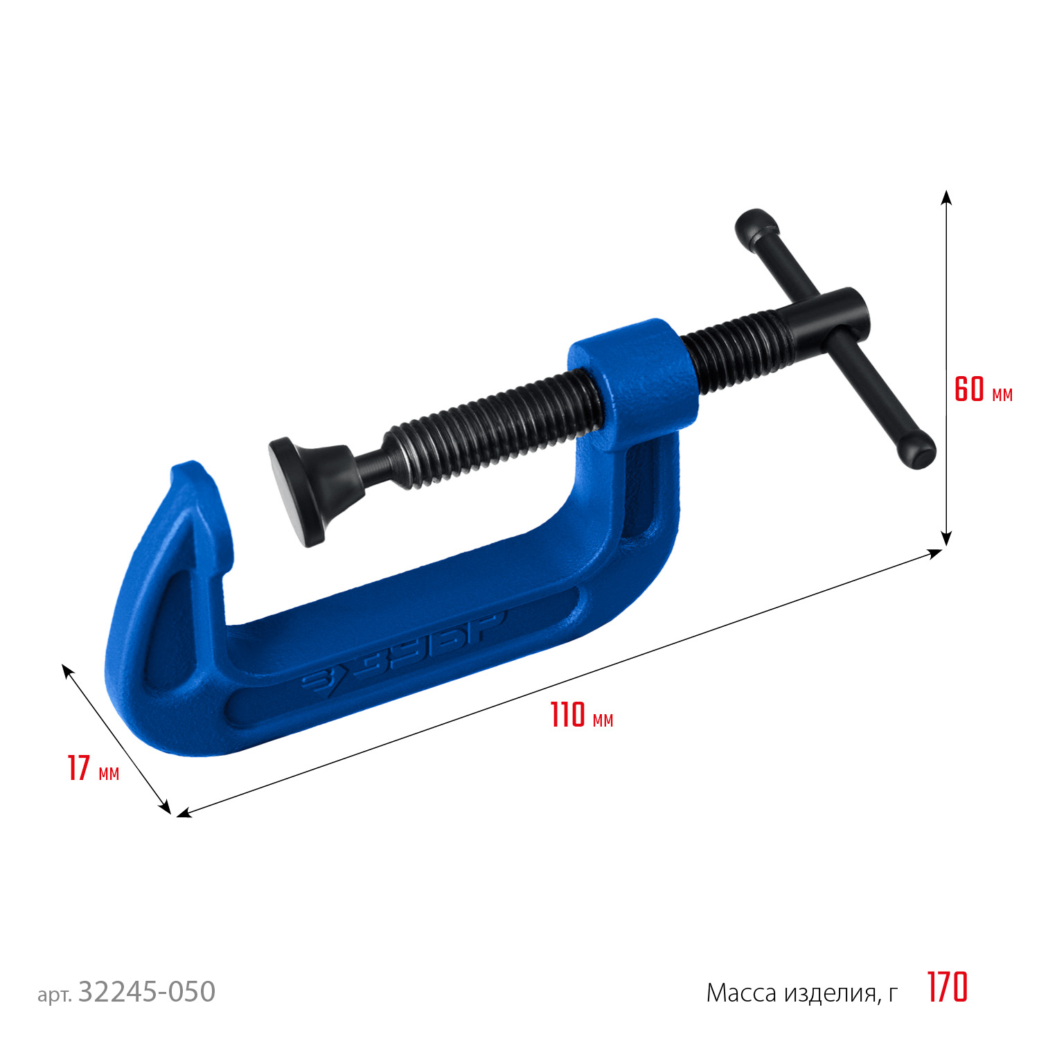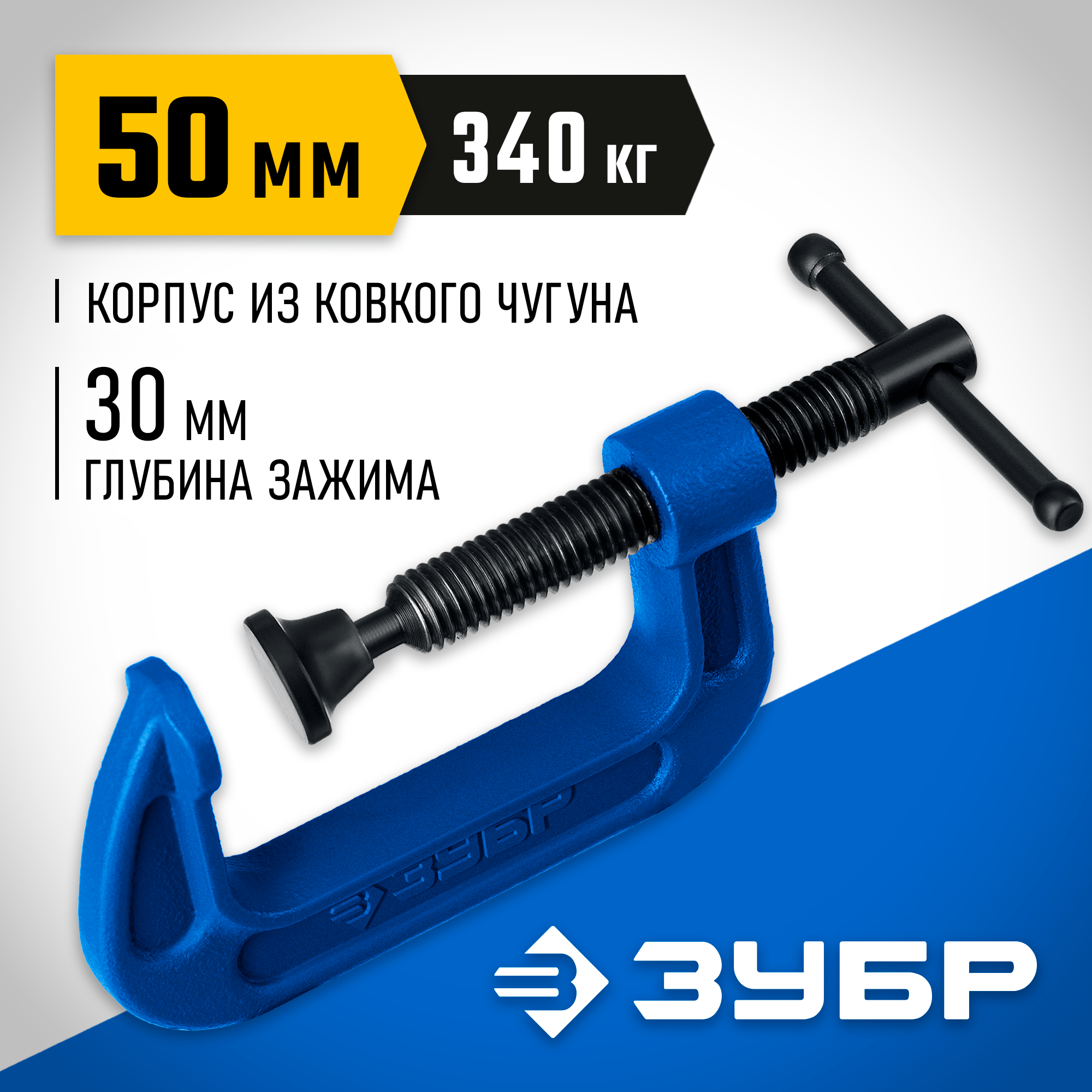 ЗУБР ПCС-50, 50 мм, чугунная струбцина тип С (G-образная), Профессионал (32245-050)