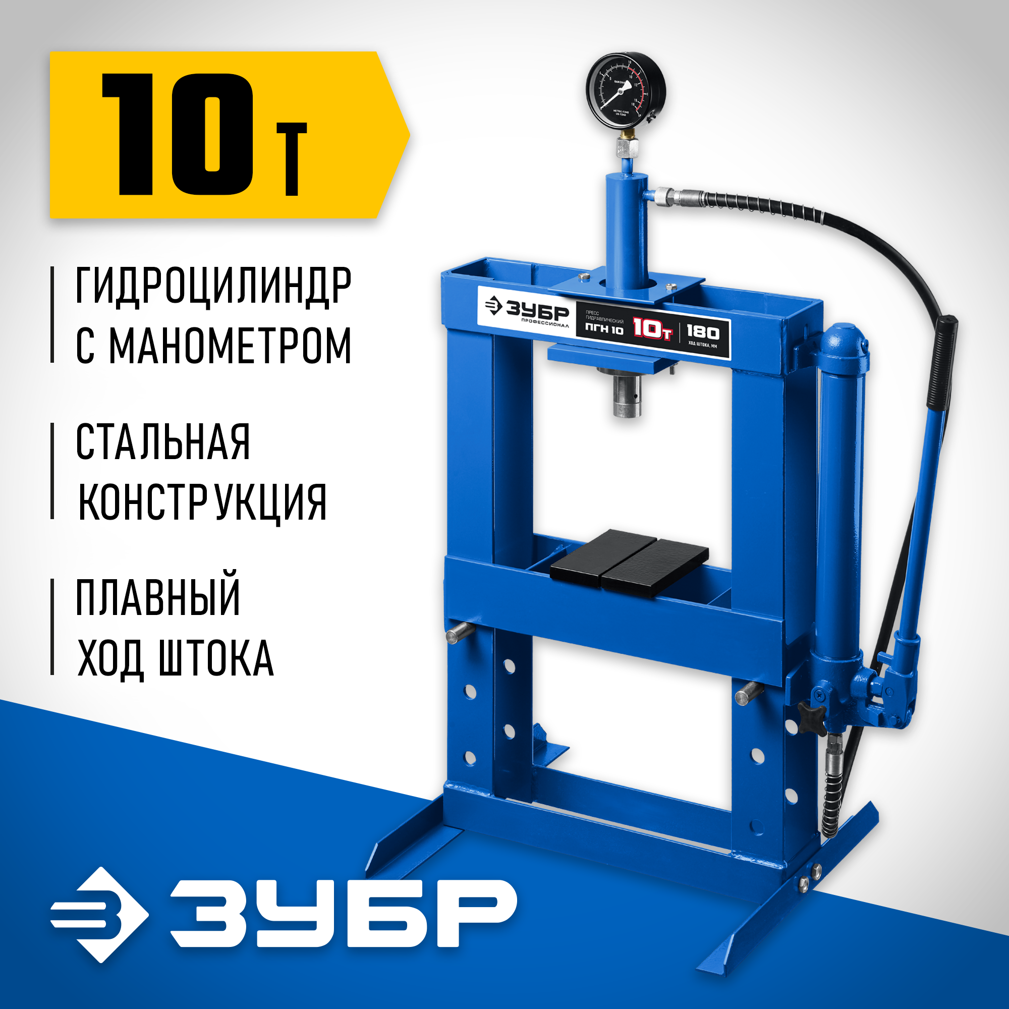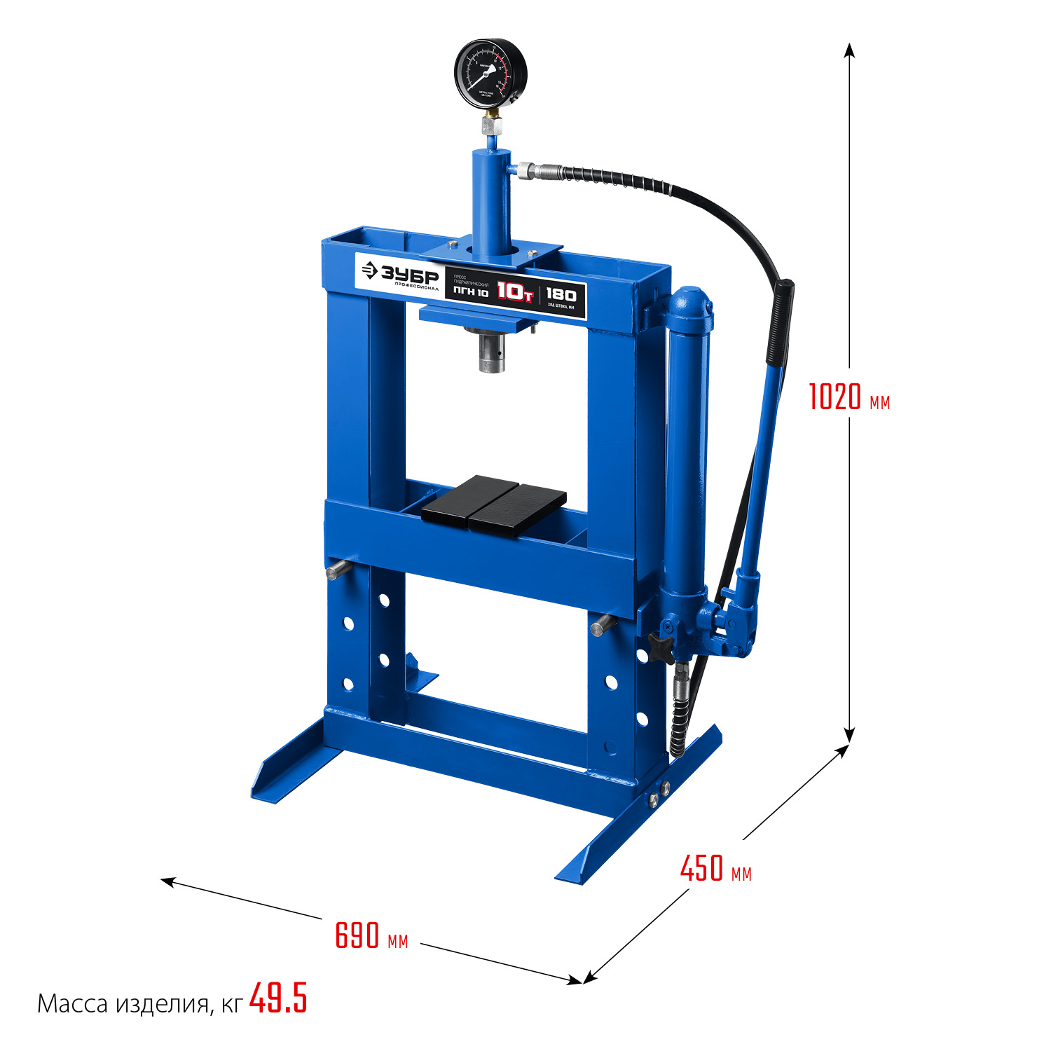 Пресс ЗУБР - мощный инструмент для запрессовки деталей. Отличается прочной металлической конструкцией. Широкое Н-образное основание надежно крепится к полу анкерными болтами. Большой рабочий диапазон. Манометр для контроля давления