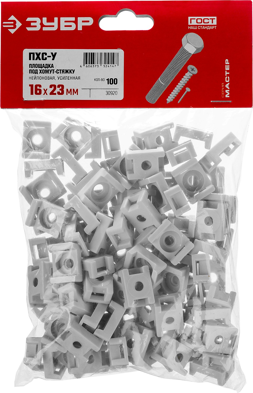 ЗУБР ПХС-У, 16 x 23 мм, нейлон, 100 шт, белая, усиленная площадка под хомут-стяжку (30920)
