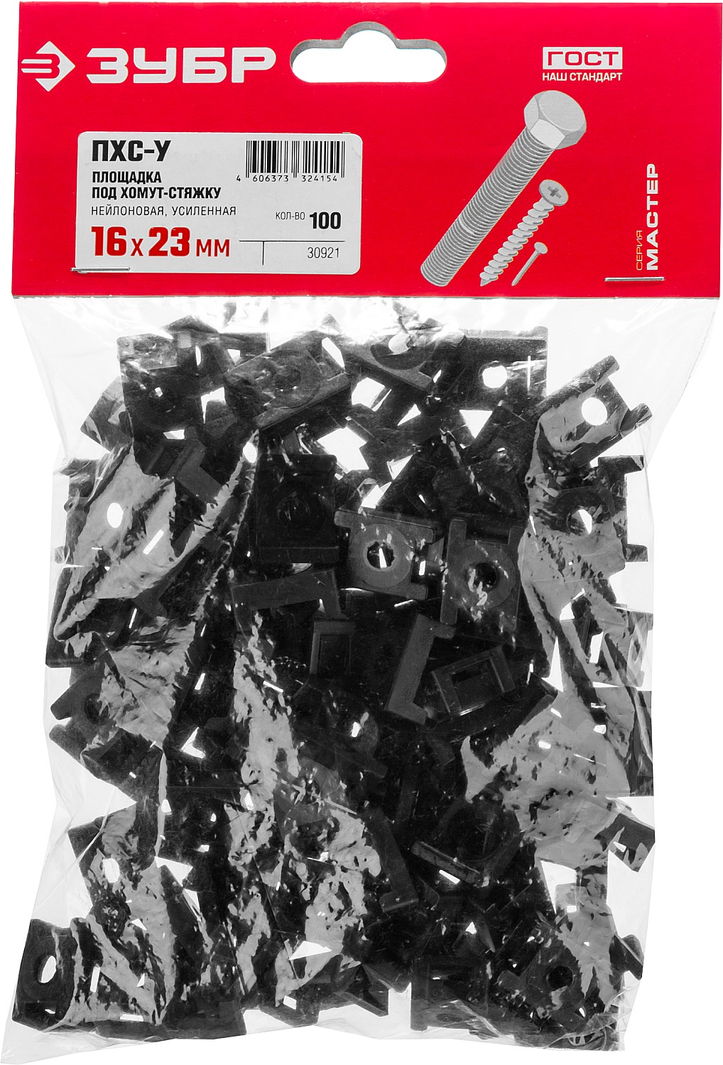 ЗУБР ПХС-У, 16 x 23 мм, нейлон, 100 шт, черная, усиленная площадка под хомут-стяжку (30921)