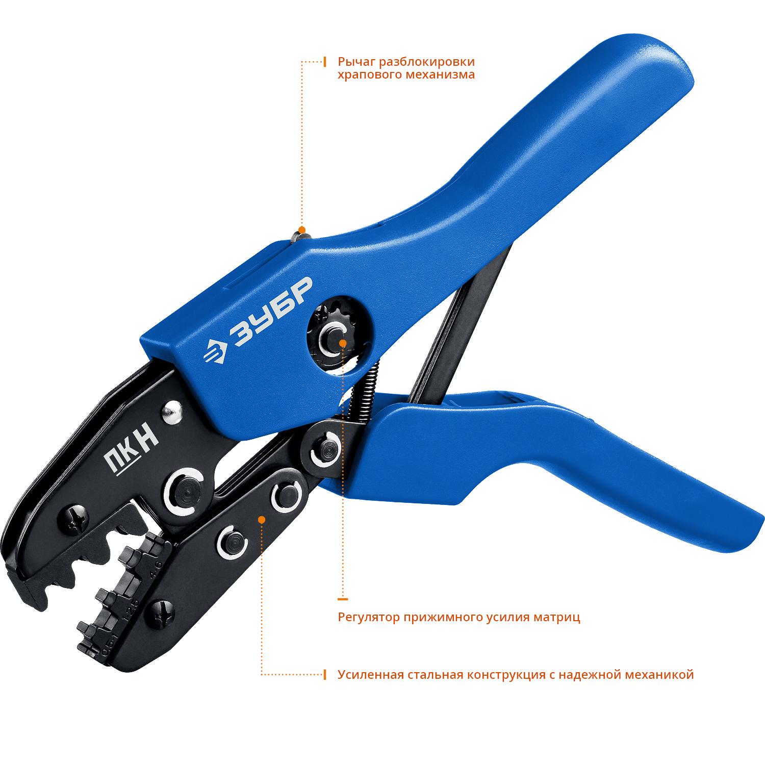 - Рычажная конструкция обеспечивает удобство в процессе обжима наконечников