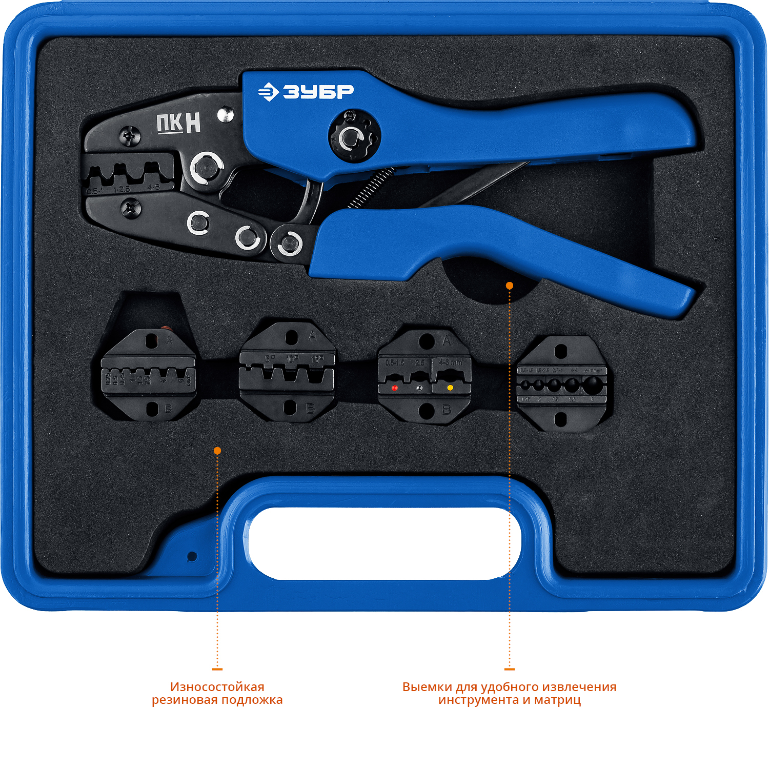 Набор пресс-клещи ЗУБР с 5 сменными матрицами изготовлен из высококачественной стали, предназначен для профессионального применения. Обладает повышенным ресурсом, обеспечивает наивысшее качество электромонтажных работ.