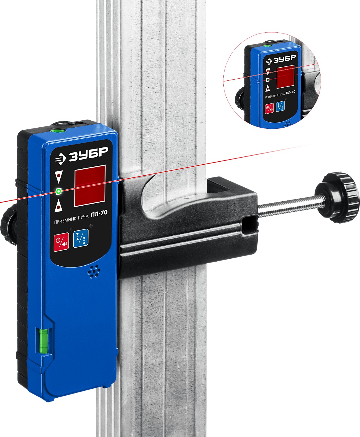 Для приёма лазерного сигнала от линейного лазерного нивелира. С его помощью можно увеличить дальность в условиях яркого освещения или плохой видимости лазерного луча.