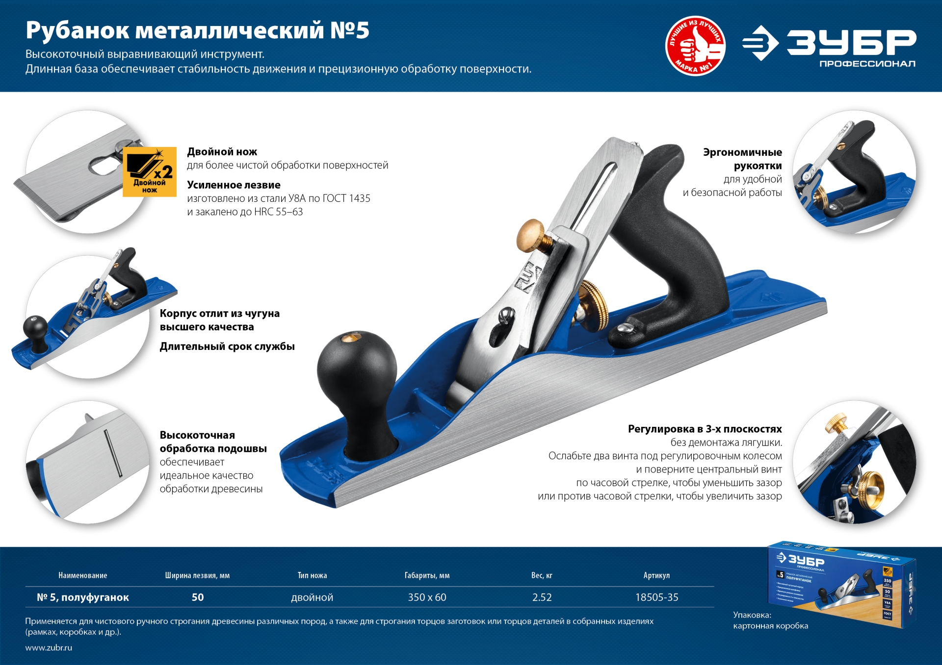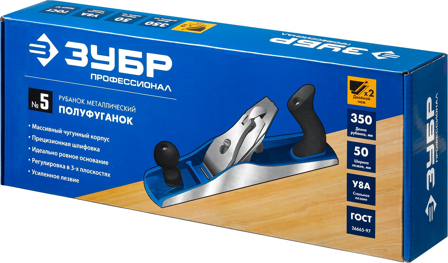 ЗУБР Полуфуганок, 350 х 60 мм, №5, металлический рубанок, Профессионал (18505-35)