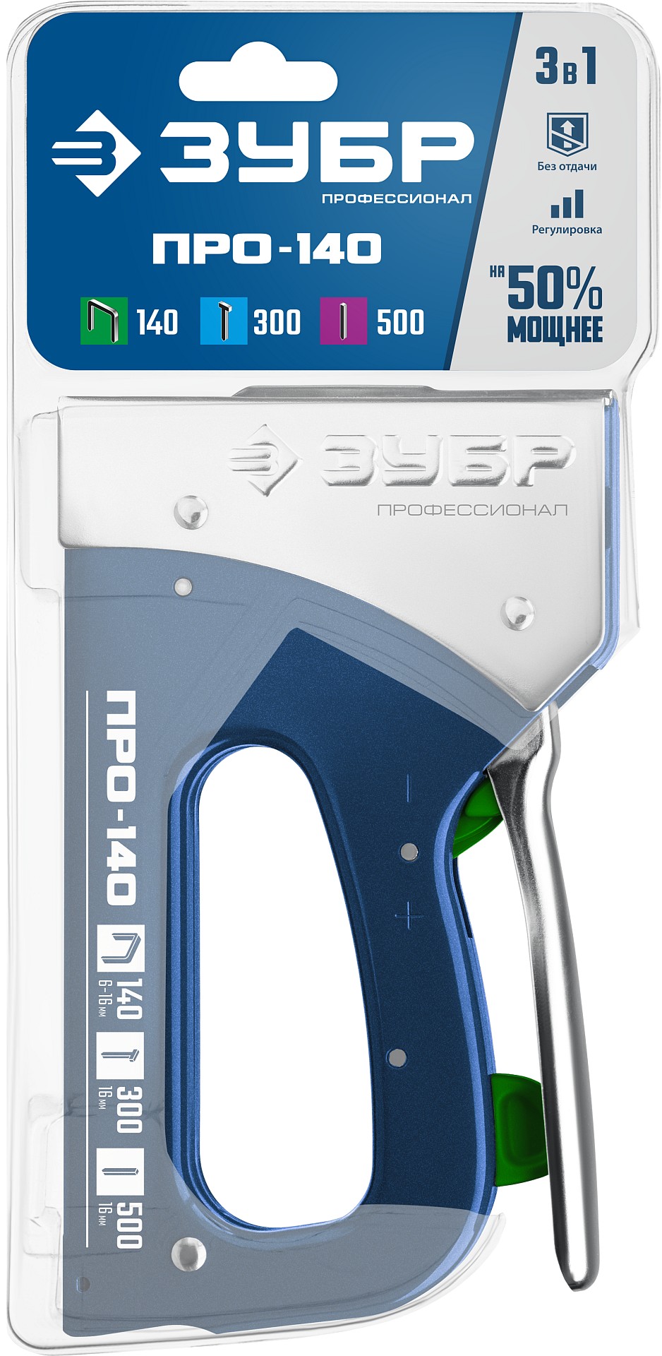 - Регулировка силы удара для скоб разной длины.